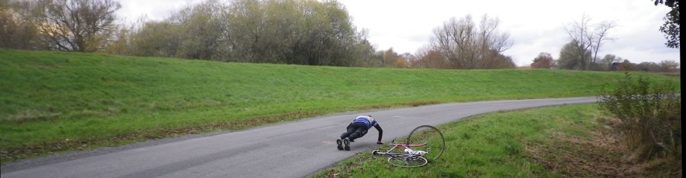 Tja mit den Rädern anderer Leute zu fahren kann schon anstrengend sein, deshalb schob Juliane ab und an ein paar Lockerungsübungen ein; jedenfalls solange es noch nicht regnete. Und so fuhren wir durch die Gegend, bis wir an die Straße nach Ritterhude kamen. Wir hätten un weiter nach Vegesack, mit der Fähre rüber auf die falsche Weserseite und wieder zurückfahren können. Also das war jedenfalls die Idee. Oder, ich in Anbetracht des schlechter werdenden Wetters und der anbrechenden Dunkelheit entschieden wir uns auf der falschen Wümmeseite wieder zurück Richtung Bremen zu fahren. Das Vertrauen zum Panasonic nahm sichtlich zu.