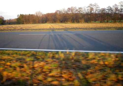 Und als der Tag sich zu Ende neigte und die Sonne ganz tief stand und von links auf mich schien, als ich eine Allee lang vor, da warf ich einen ganz langen Schatten auf die Landschaft. Eine schöne Tour, wenn auch nur knapp über 60 km.