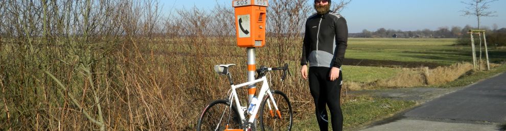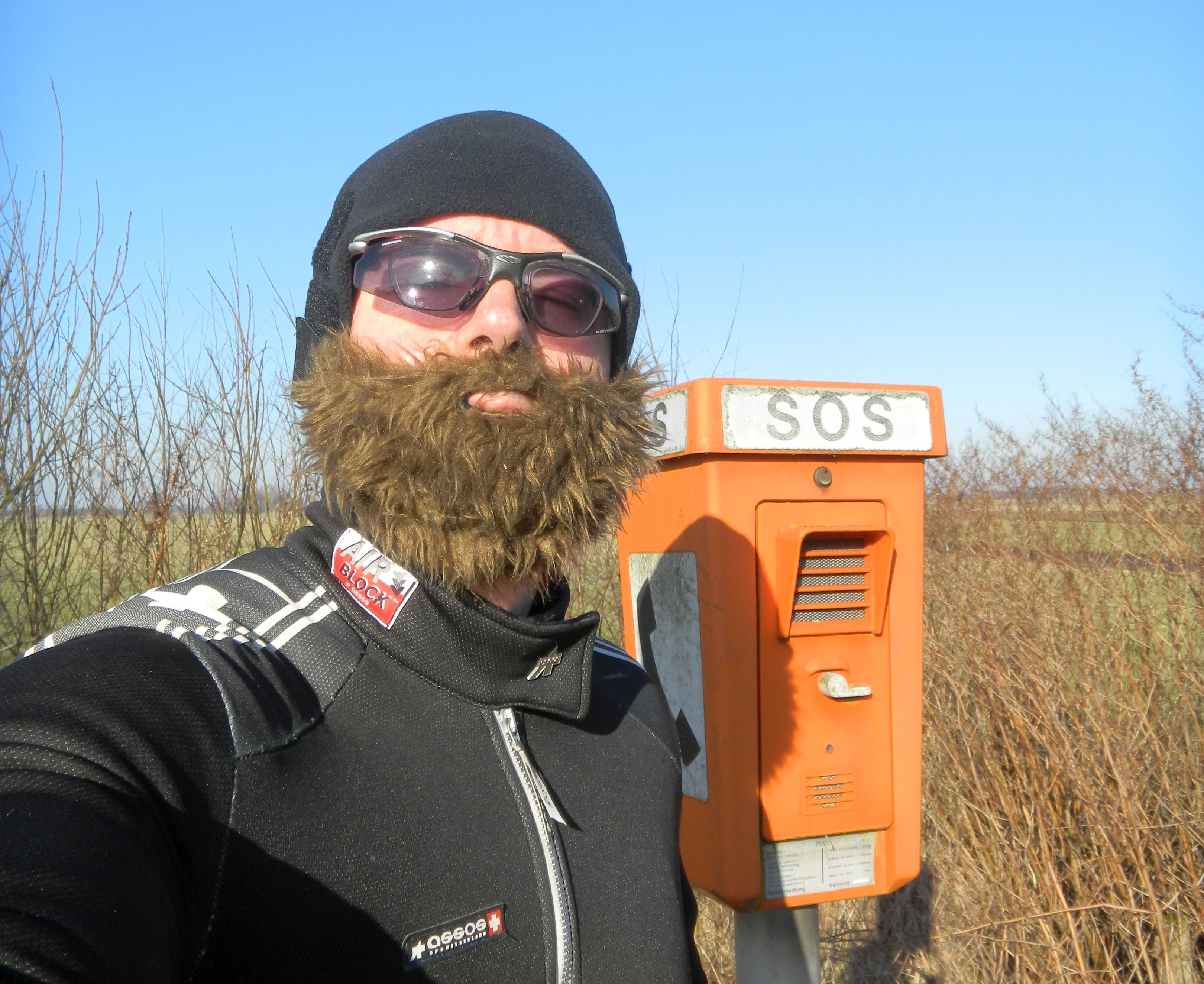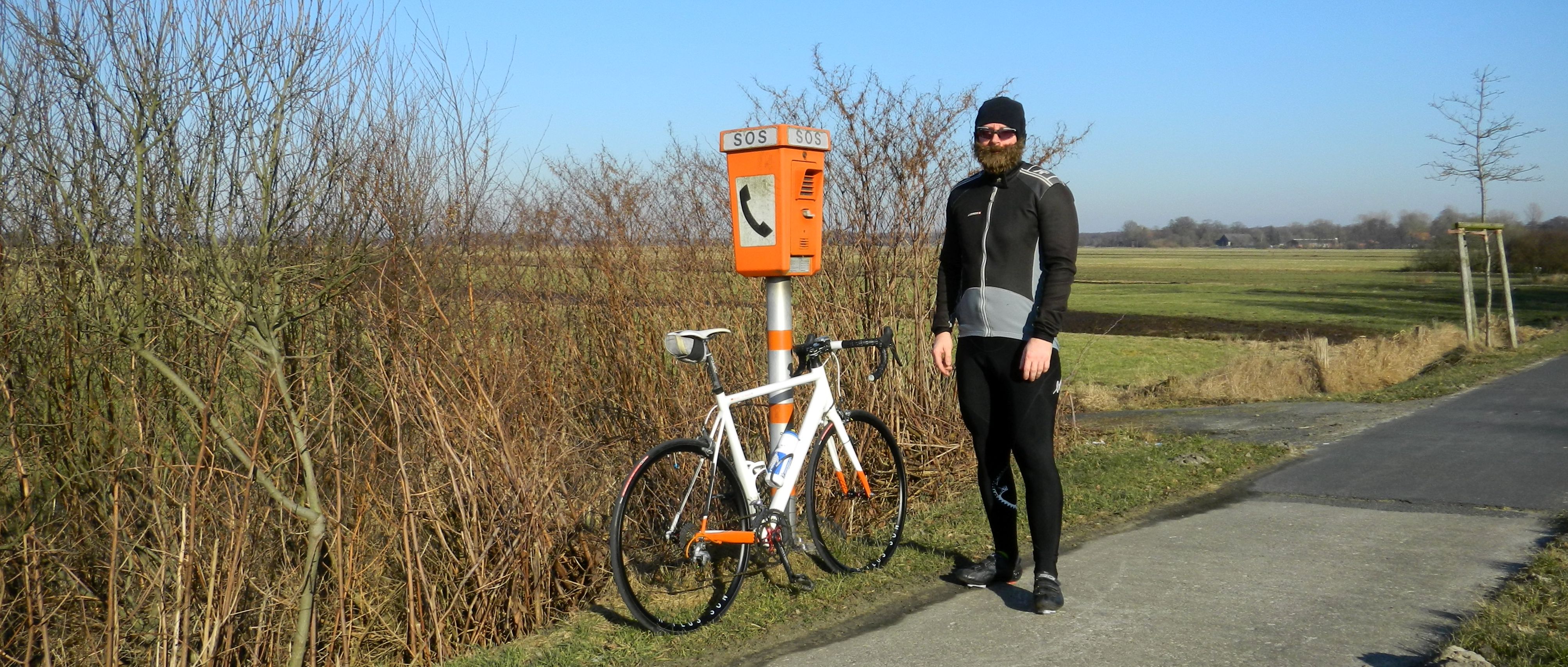 Auf dem Deich war es erfreulich leer und schwups war ich schon auf der Ritterhuder Strasse und fuhr dann weiter Richtung Worpswede, wo die beliebte „SOS Berge“ Notrufsäule steht (in etwa). Ich hätte mich doch vorher rasieren sollen, denn jetzt wurde mir so richtig heiss. Und dann so ganz alleine, ohne meine Fixed Beards Bremen Freunde, mir wurde ganz einsam um das Herz.