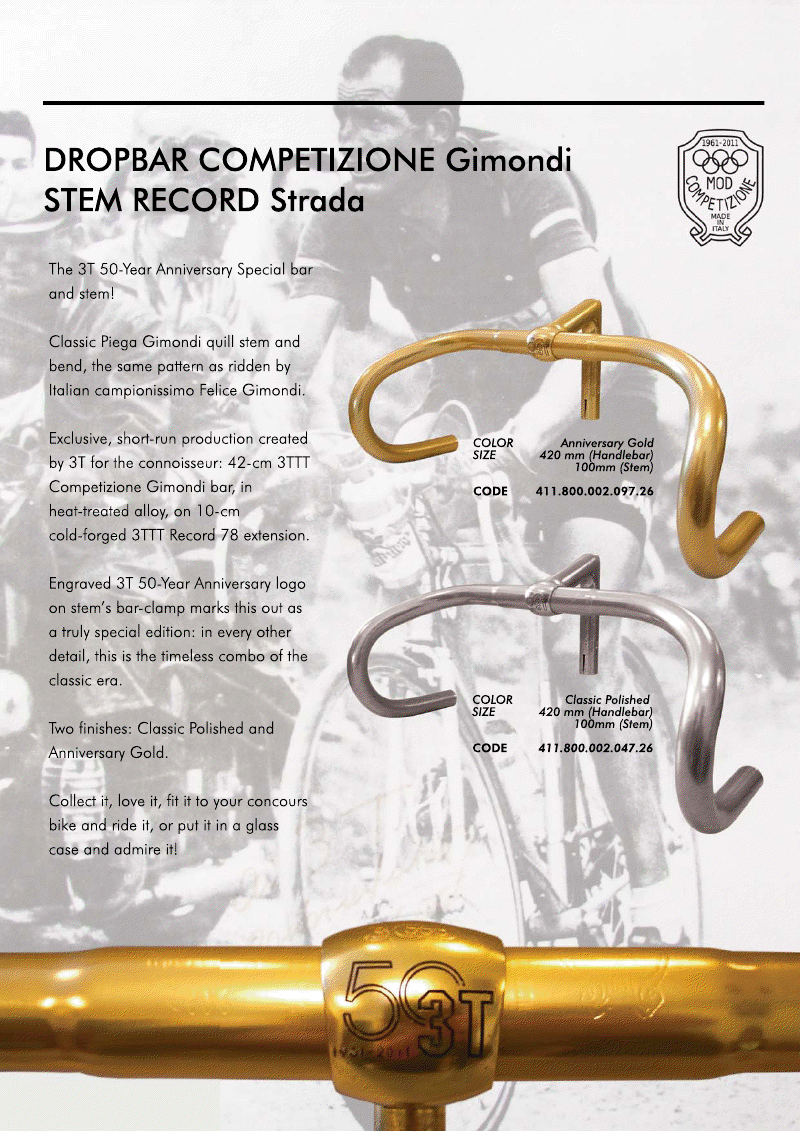 Zwei weitere Erinnerung an Gimondi: Ich habe einmal zwei Rahmen namens Gimondi gekauft und die waren ziemlich schrottig. Dummerweise wusste ich damals nicht, dass das Schrott ist und habe diese weiter an Hiroshi von C Speed in Japan verkauft, der damit icht so wahnsinnig glücklich geworden ist. Sorry. Und es gibt einen „Gimondi Type“ Lenker, z.B. von 3ttt. Das ist ein Mittelding zwischen einem normalen Bahnradlenker und einem Rennradlenker, die Krümmung oben fängt relativ schnell an und läuft weit aus. Wird wohl eher bei Kriteriumrennen verwendet. Ich habe einen an meinem Union Fixie.