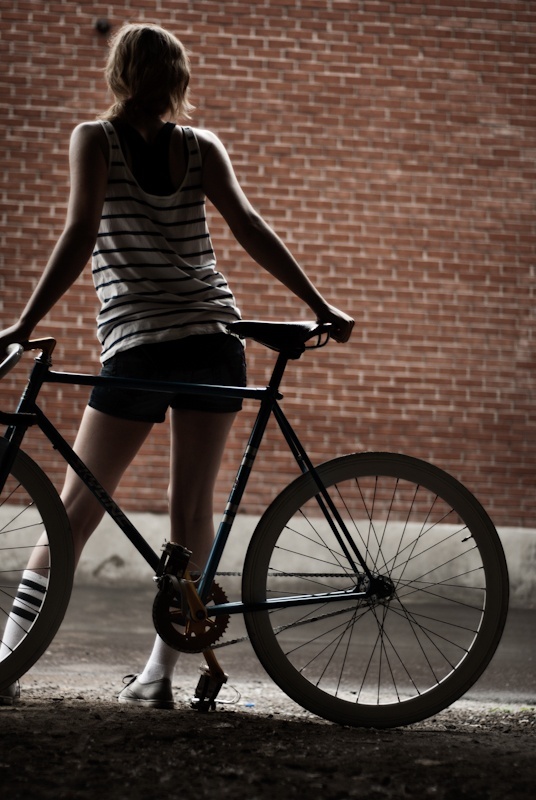 Mein Freund David aus Tokyo beklagte sich auf diesem Blog letztens, das sich viel zu viele Fotos von leicht bekleideten Asiatinnen auf Rädern posten würde. Es wird also Zeit für eine gut bekleidete Mitteleuropäerin und ihr Rad: Manu und ihr Mercian aka M&M.