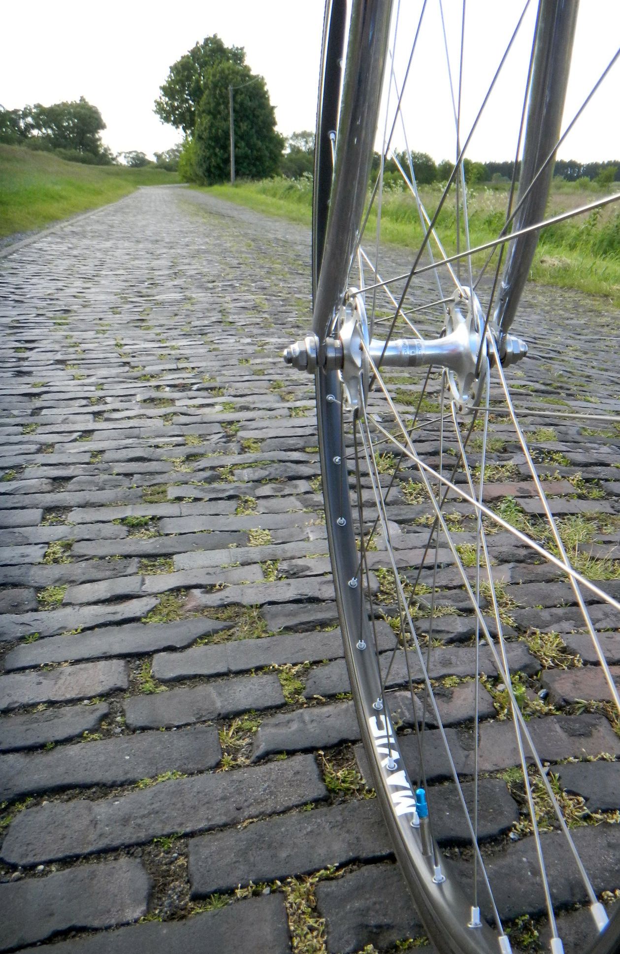 Das macht aber nichts, denn es ist noch schön hell, der Himmel blau und sonnig und ein starker Wind weht von der Küste. Ich will einfach nur ein wenig fahren und die Woche vergessen. So fahre ich an der Wümme lang, nichts besonderes aber wenigstens ist es leer. Dann auf der anderen Seite zurück. Das ist, weil so einfach erreichbar, eine meiner liebsten Kurzdistanzstrecken. Hier fährt fast niemand, was an einem fast drei Kilometer langen Stück Kopfsteinpflasterstrasse liegt auf der man arg durchgerüttelt wird. Die anderen 10 km oder so sind aber sehr schön und das Kopfsteinpflaster ist trotz schmaler Schlauchreifen mt 10 bar zu ertragen. Muss wohl an den Mavic Paris-Roubaix Felgen liegen.