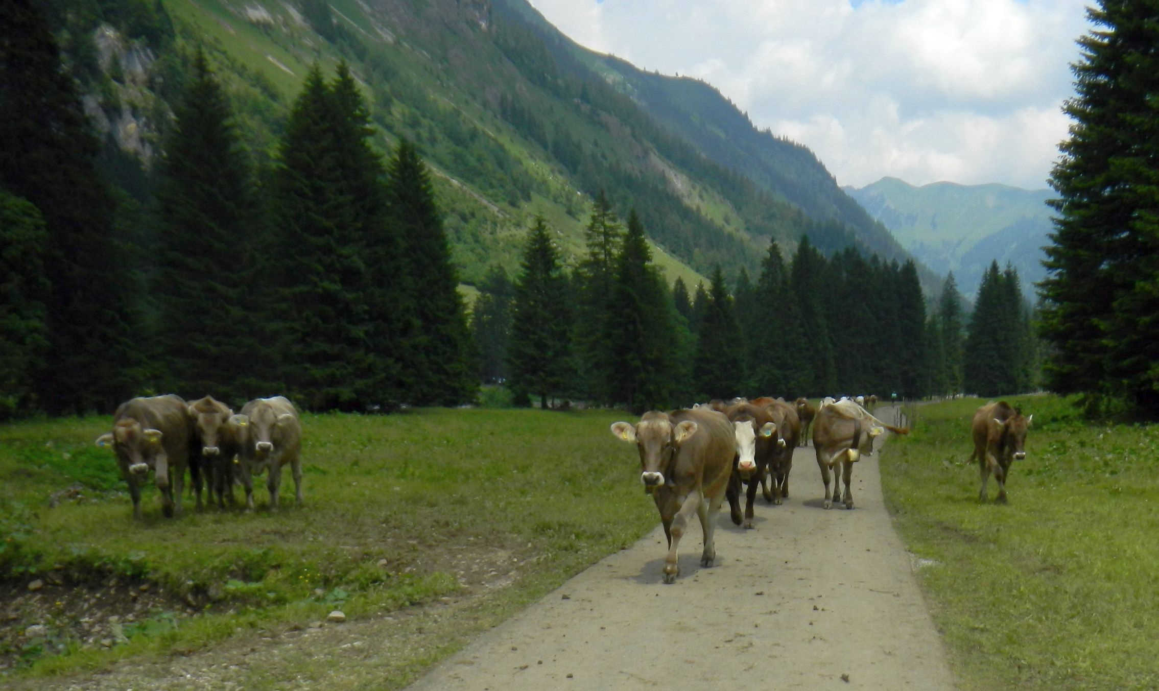 Zunächt bin ich heute nach Sonthofen und Hindelang gefahren, um mich zum letzten Mal am Oberjoch zu versuchen. Eine eigenartige Mischung von Müdigkeit nach 5 Tagen Radfahren am Stück, aber auch von gutem Druck auf den Beinen. Ich war gerade einmal eine Minute schneller als bei meinem ersten Versuch am Samstag, aber vom Gefühl her war ich doch zufrieden. Danach runter im Schuss, zurück nach Oberstdorf und dann durch das Tal im Süden am Fellhorn vorbei immer weiter geradeaus über die Almen. Die Strassen sind hier gesperrt, es gibt alle paar Kilometer Gatter, um die Kühe daran zu hindern ihre Almen zu verlassen. Keine Autos, jede Menge Wanderer, ein paar MTBs und erstaunlich viele alte Menschen auf ebikes.