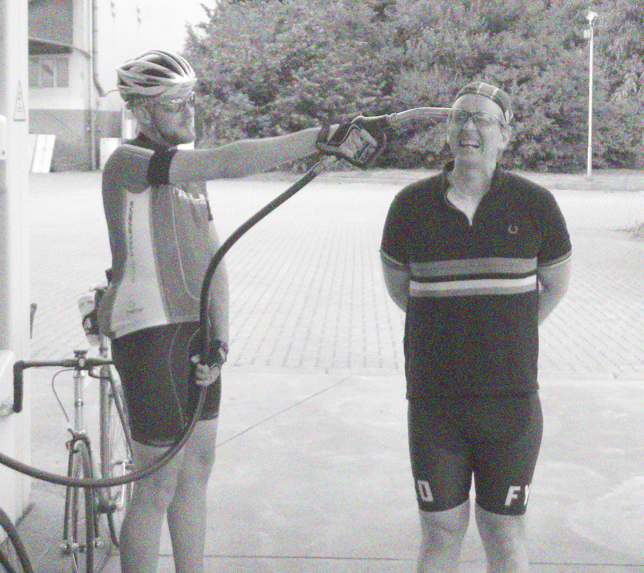 Ich kam zu Haus am Walde, ohne Bart aber daür mit Negativ-Weltmeister Jersey und war erstaunt wie viele Fixed Beards gekommen waren: Blitzfixedknirschrad, Donneraufkleberrad, Markuswürfelrad, Blumenrad und Blumenradone. Wow, so einen Haufen PS hatte ich lange nicht mehr gesehen. Und gleich ging die Post ab Richtung Fischerhude, gnadenlos war das Tempo, so dass wir völlig ausgelaugt an der Eisdiele Lindenlaube ankamen und eine wohlverdienete Pause einlegten.