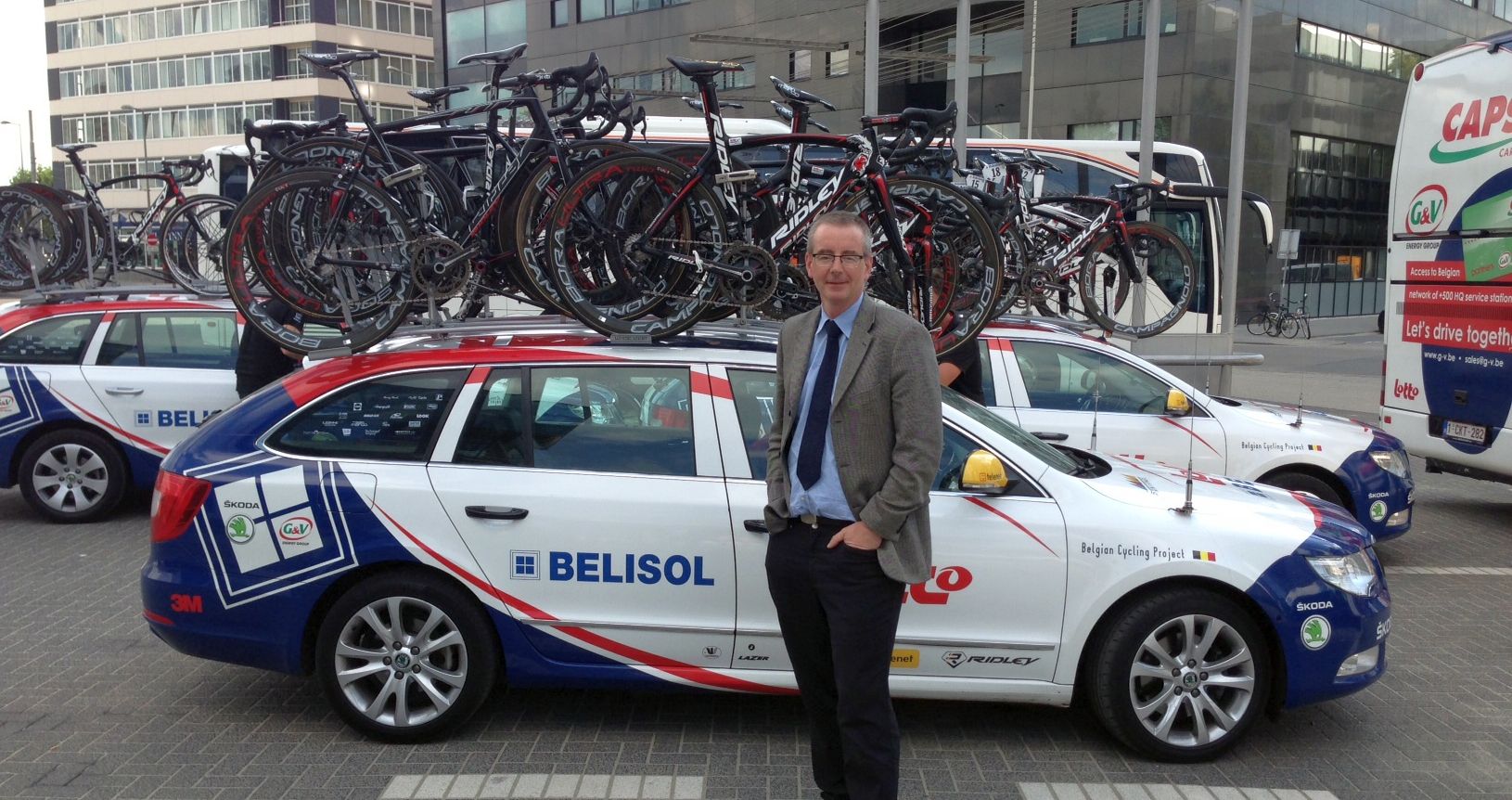 Meine Studis glaubten mir mal wieder kein Wort (ist eigentlich immer so, auch wenn ich unterrichte und unglaubliche Geschichten aus Japan erzähle) von wegen Zufall. Sie dachten mal wieder, dass ich das alles genaus geplant hatte, gar nicht zum Hafen wollte, sondern nur meinen Radsportlichen Interessen nachgehe. Rasselbande. Nach einem Hinwis auf die Notengebung war Ruhe und sie versammelten sich begeistert vor dem Lotto Belisol Teambus zum Gruppenphoto. Deri Pommes, zwei Kroketten und 400km später war dann Schluß.