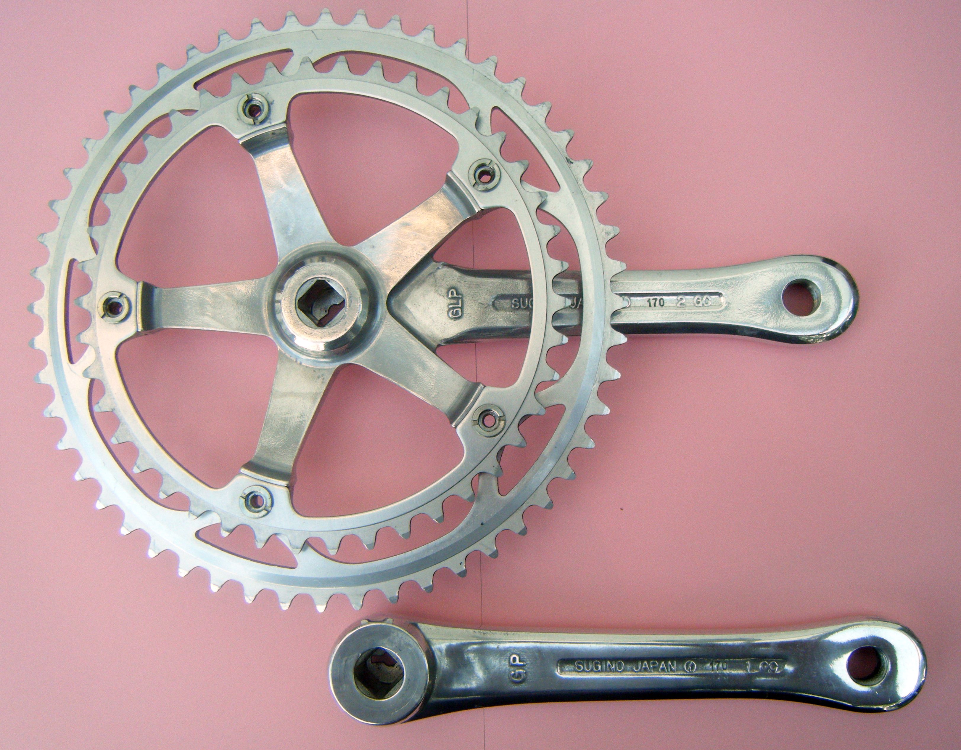 Eien Sugino GLP Special Kurbel aus den Achtzigern mit 170mm Kurbellänge und 52/42 Blättern von Suntour. Man weiss ja nie, wozu man das Zeug brauchen kann, aber die hier ganz bestimmt für irgendetwas schönes und neues was im Winter zusammengebastelt wird.