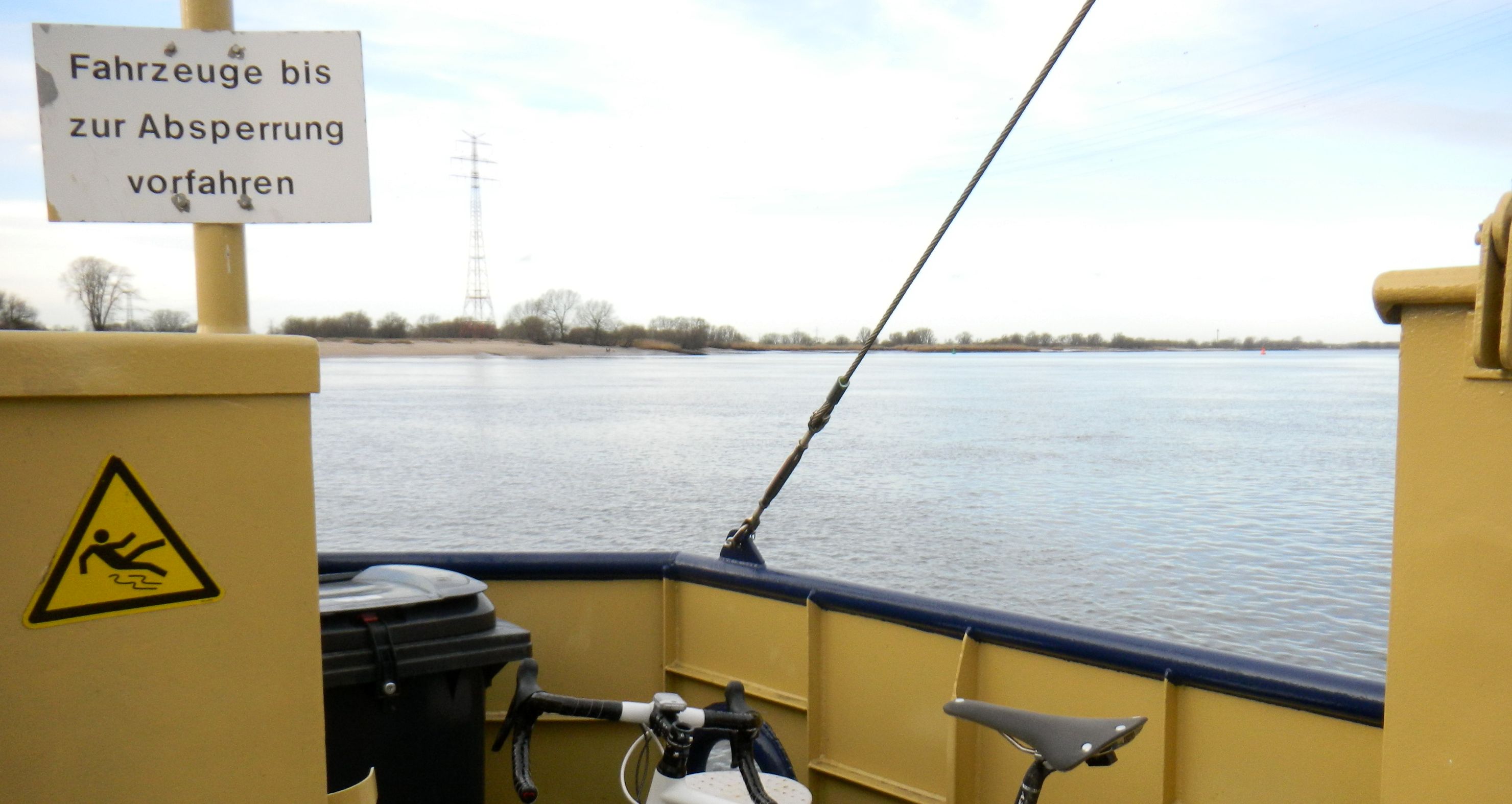 This is actually the benfit of inputting data manually on the Strava website. If uploaded per GPS devide the distance the ferry moves will be automatically added, plus, because it is rather slow, it will spoil your moing average. And of course this is cheating! But I don’t want to complain, something which is called „motzen“ in German and is located just next to the river Weser.