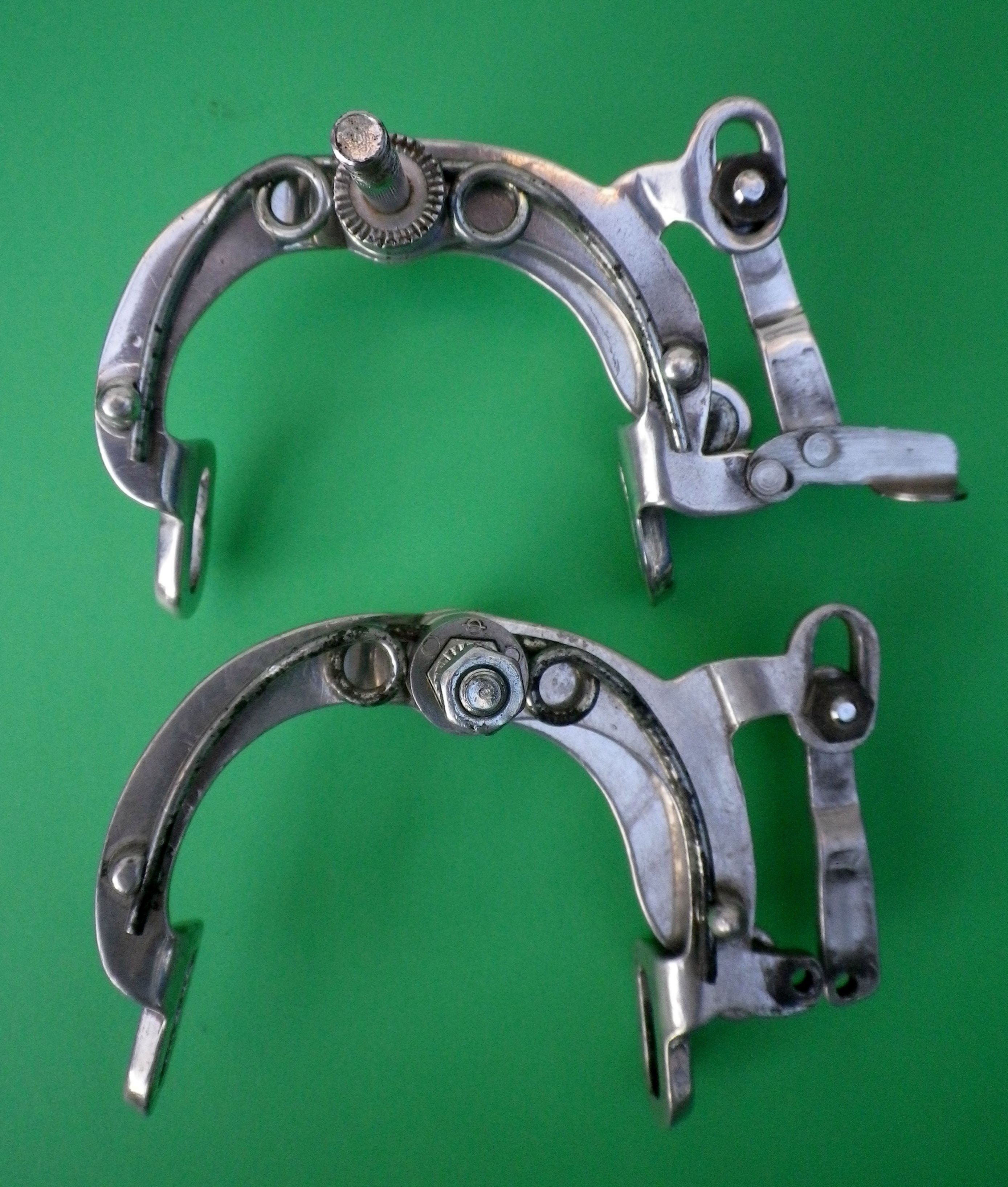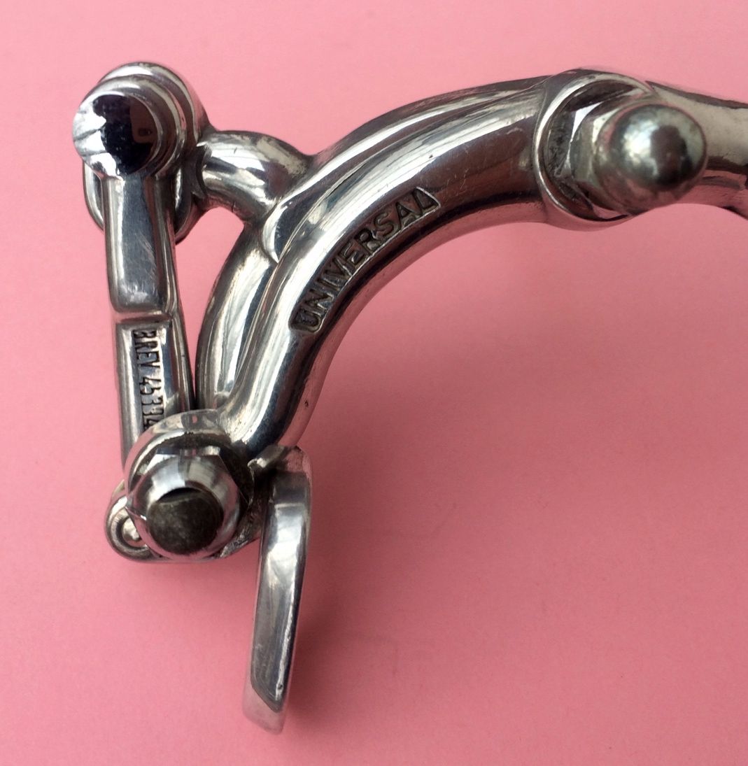 Bei diesem Vetta Rahmen gibt es Cinelli Pantos am Bremsteg und an der Gabel, es gibt keine Markierungen an den Ausfallenden. Die Gabel ist vollverchromt, auch die rechte Kettenstrebe, der ganze Rahmen aber nicht unterverchromt (Dank an die Kratzer die das offengelegt haben). Ein Columbus Aufkleber klebt am Sattelrohr in das eine 26,8mm Stütze kommt.