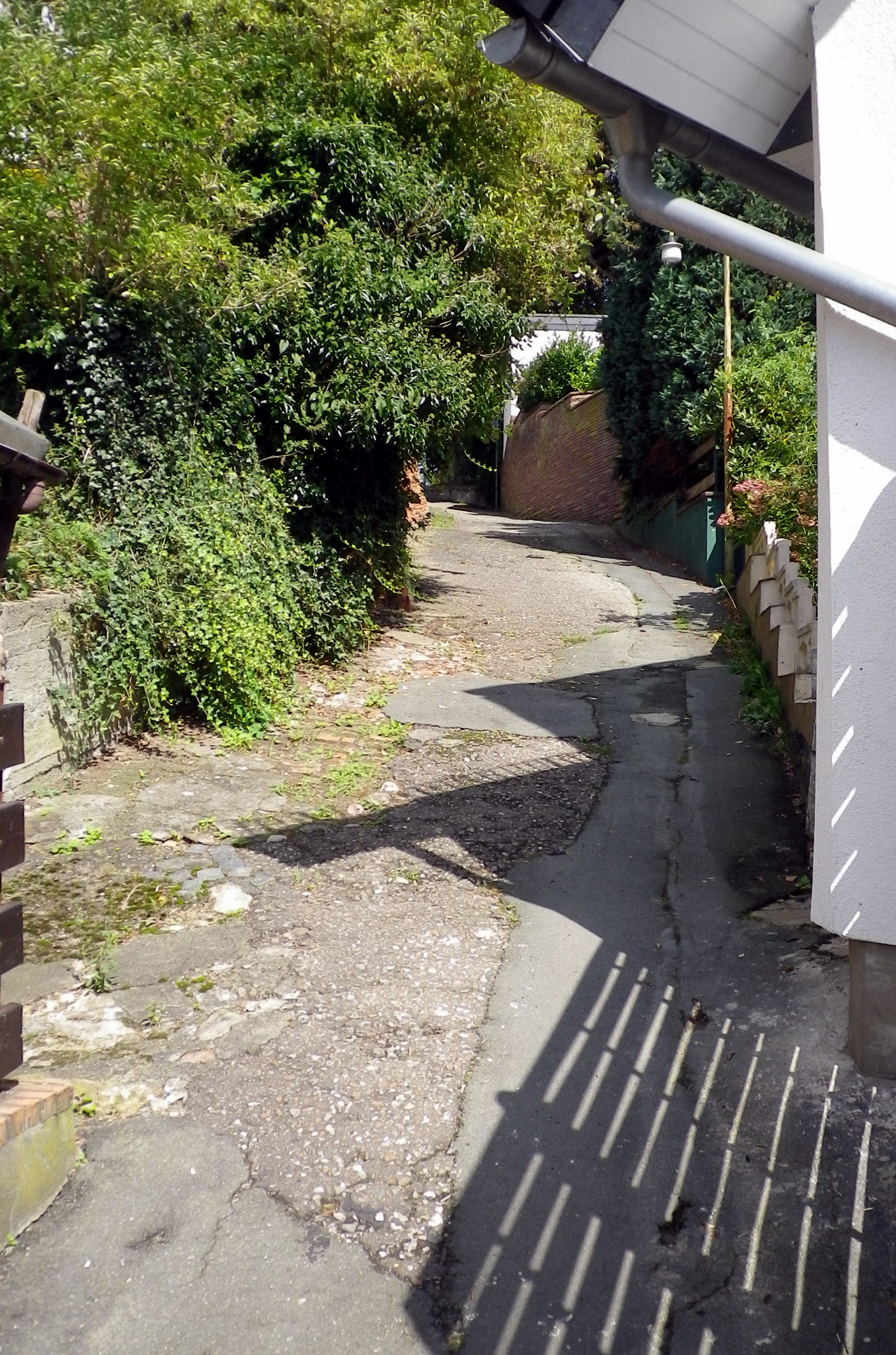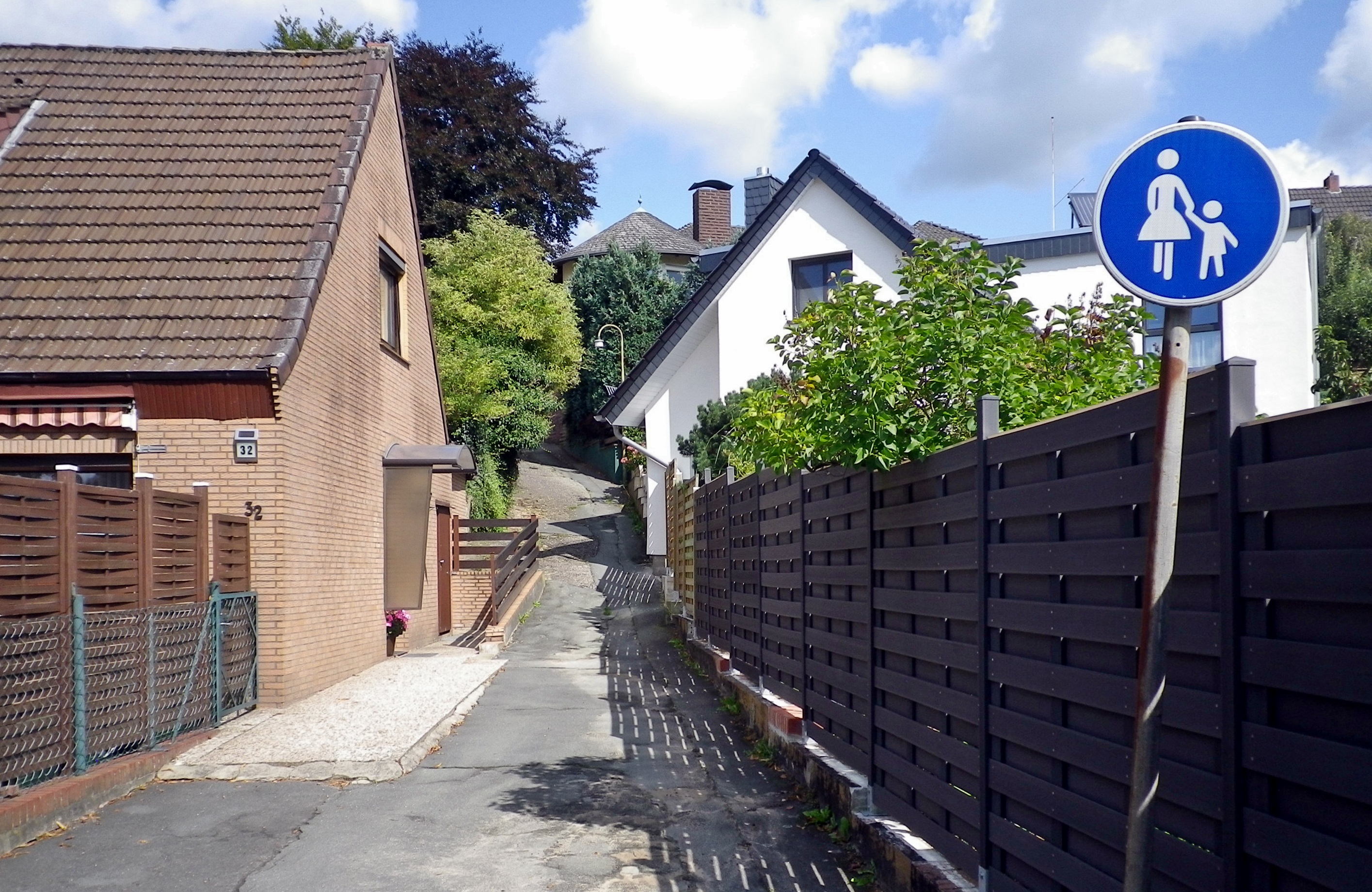 Der Eingang zum hohen Zeh. Gut versteckt. Nimmt man den falschen, so fährt man mit vollem Anlauf gegen ein Garagentor.