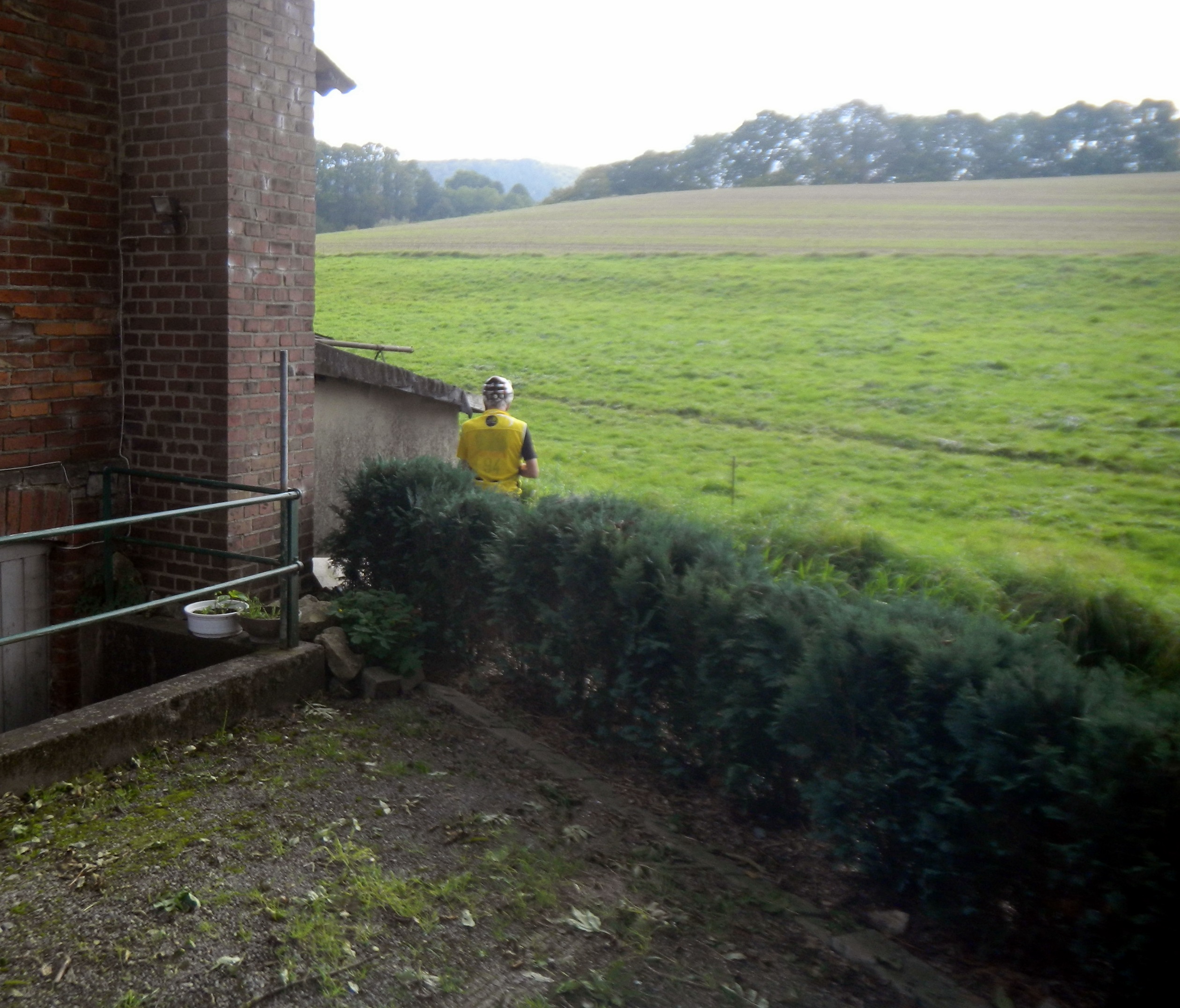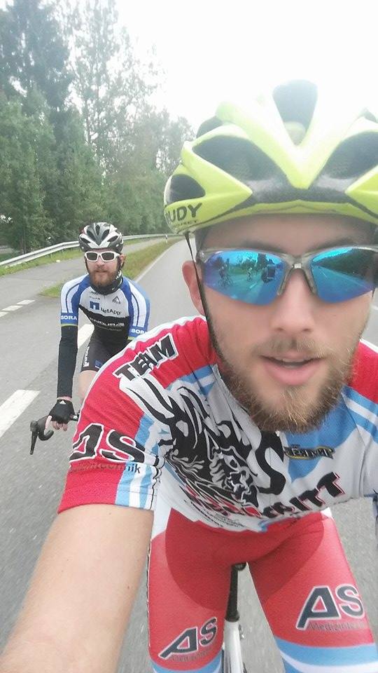 Allein auf weiter Flur mit Hannes, kein Bremer verirrte sich nach Lauenau – doch ganz am Ende sehen wir einen im Trikot vom RCB. Eigentlich sollten noch Eddie und seine Frau mitkommen, die aber in letzter Stunden absagen. Da wir viel zu spät für den Start gekommen sind fahren wir quasi die ganze Strecke alleine. Gestählt durch die große Weserrunde bin ich in Bestform. Hannes darf ab und an vorne im Flachen Führungsarbeit machen, aber auf den Anstiegen und Abfahrten gebe ich zur Abwechslung mal das Tempo vor. Auch nicht schlecht. Irgendwann überholen wir eine Gruppe gelber Visbeker und ein Mädel hängt sich an uns ran, muss aber dann wieder auf ihre (lahmeren) Jungs warten. Sonst lernen wir leider niemanden neu kennen. Mit Hannes fahre ich aber sehr gerne, da wir das gleiche Maß an Anstrengung und an Nicht-Ernsthaftigkeit in unsere Touren legen.