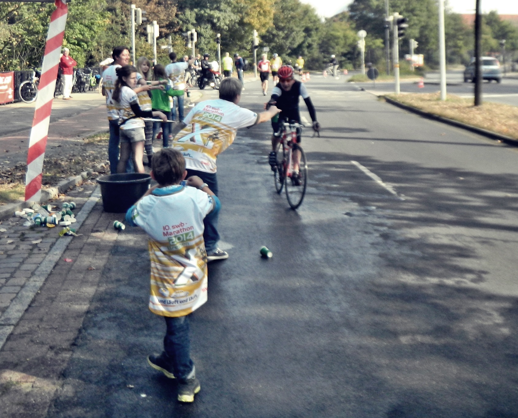 Zum Glück hatten freiwillige Helfer Verpflegungsstationen entlang der Fluchtroute aufgebaut, so dass die Flüchtlinge möglichst schnell in die Sicherheit laufen konnten. Caroline nutze die Gelegenheit aus und schnappte sich einen Becher Wasser.