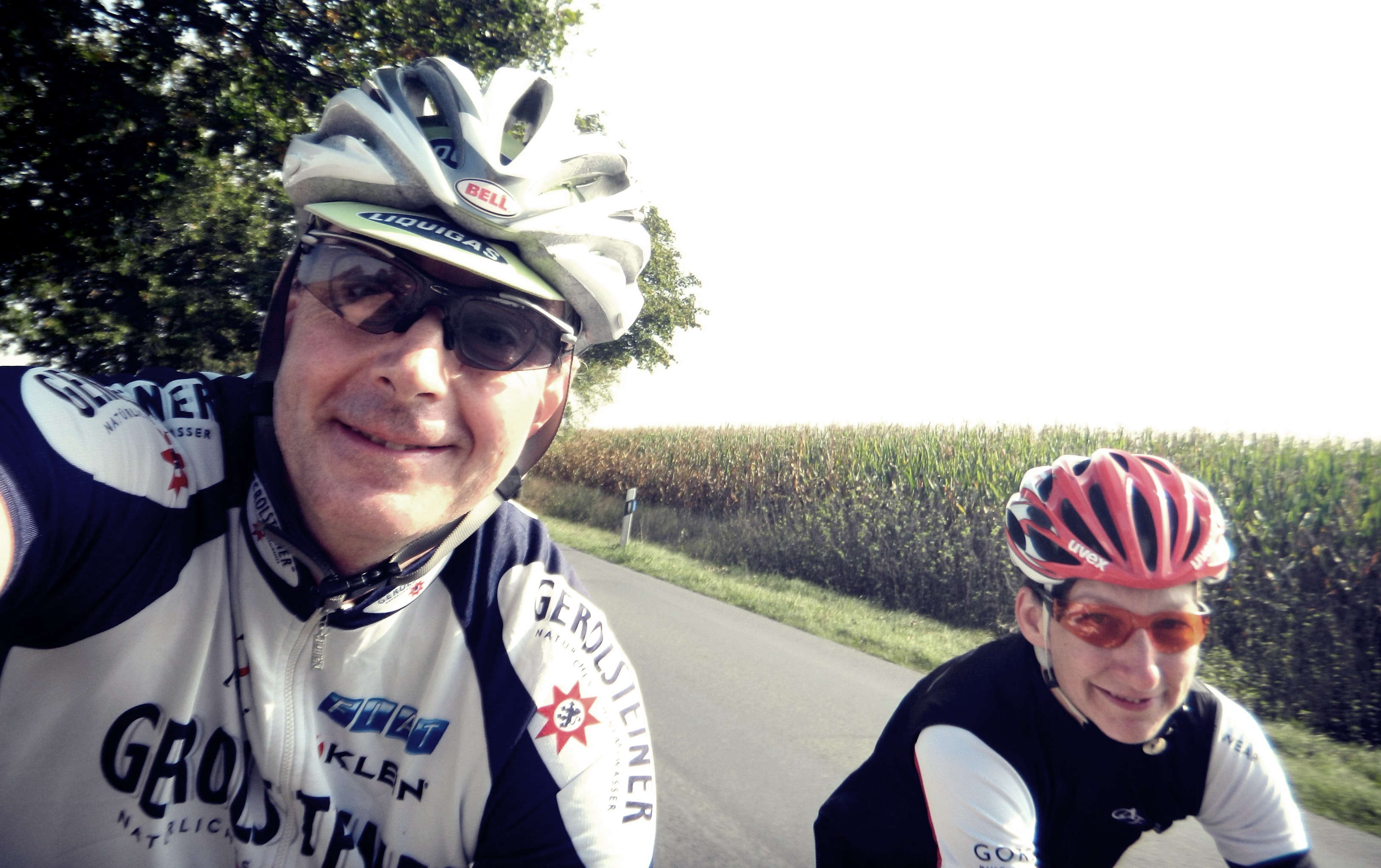 So gestärkt machten wir uns nun über den Deich, Fischerhude und Quelkhorn Richtung Wilstedt. Das Tempo war gemütlich und so hatten wir viel Zeit uns zu unterhalten. Statt den üblichen Weg von Wilstedt zurückzufahren, radelten wir weiter nach Tarmstedt und von dort aus Richtung Grasberg. Hier waren wir so langsam, dass die Zeit für ein paar Selfies reichte.