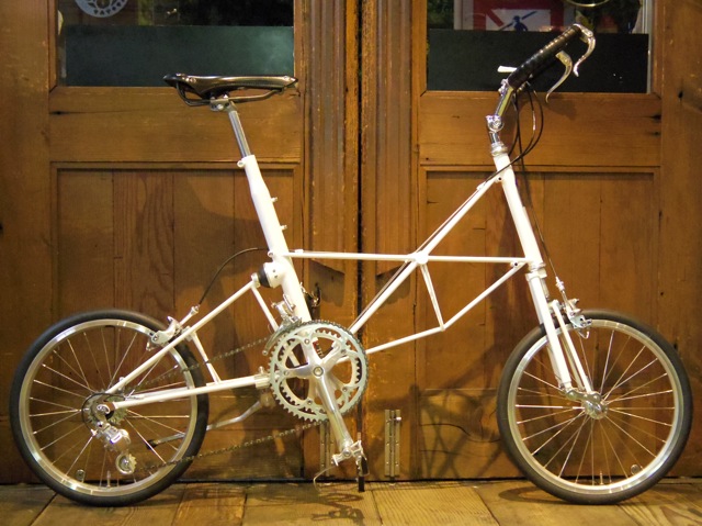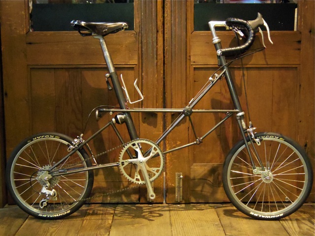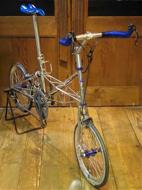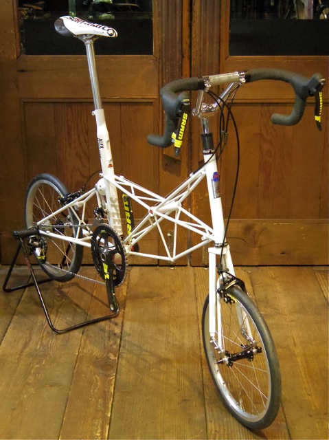 Ab und an kaufte ich dort etwas, ich glaube zwei paar Nike Radhandschuhe die ich sehr lange benutzte hatte ich von da und ein paar eloxierte Ventilkappen. Ich kaufte dort auch nicht so gerne, denn ehrlich gesagt war das Personal nicht gerade freundlich. Aber egal. Denn meistens staunte ich nur, dennKoohoo hatte eine ganz exquisite Auswahl an Rädern. Und ie Krönung waren die Alex Moulton Klappräder die gleich vorne am Eingang standen.