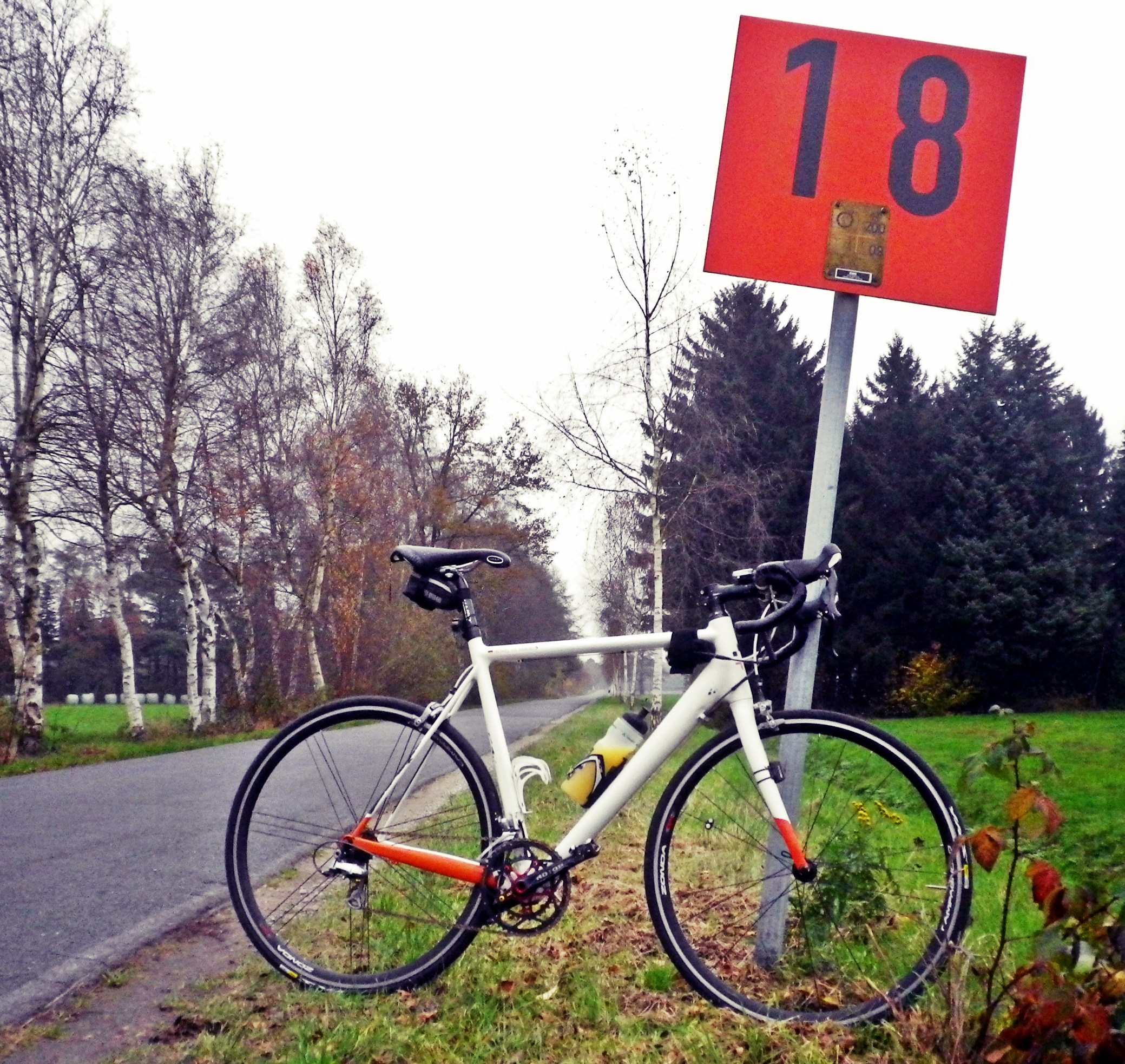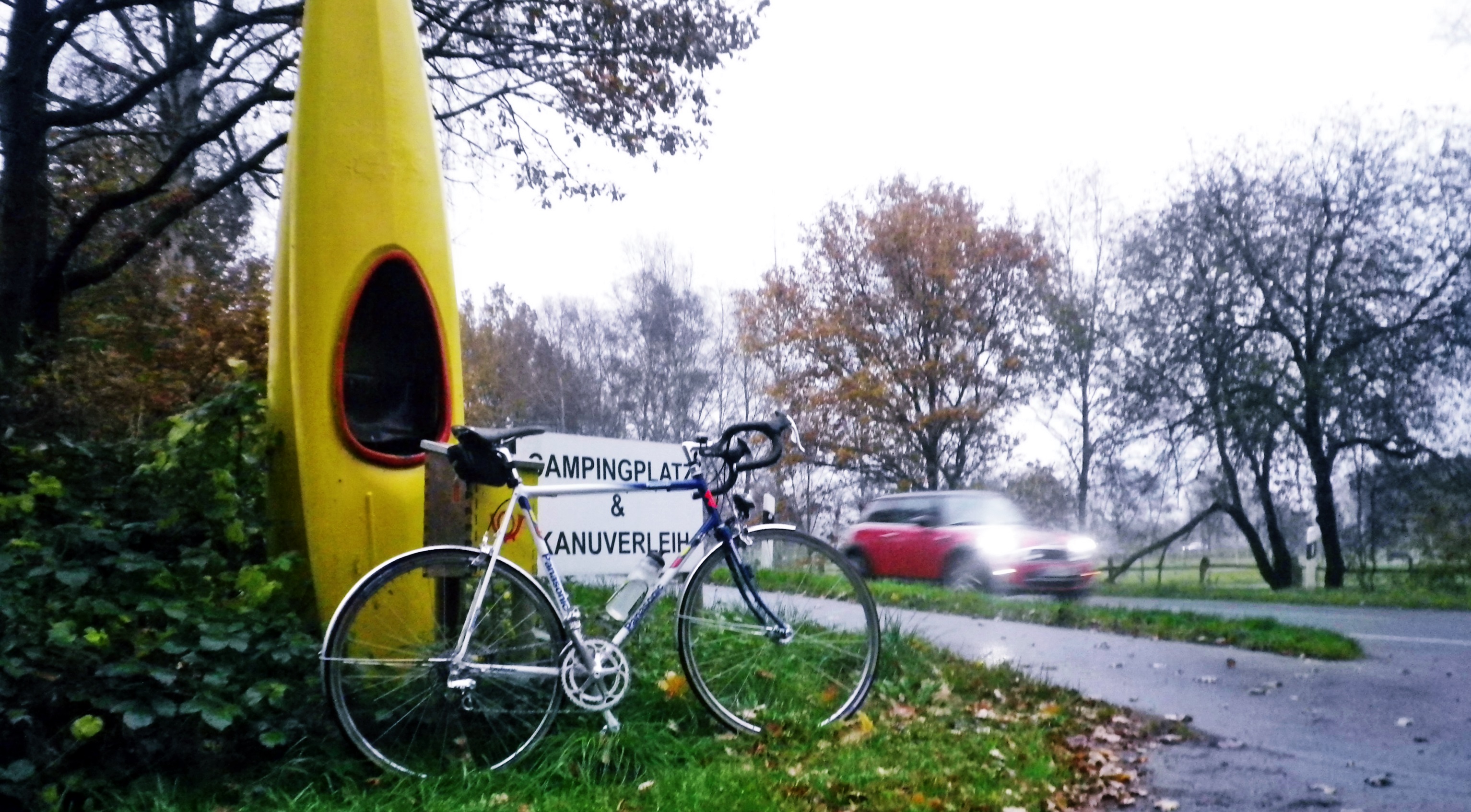 Am Freitag war ich zum ersten Mal seit langer Zeit mal wieder auf dem Fixie unterwegs. Ich hatte vergessen wie viel Spaß das machen kann. Aber am Samstag wollte ich Strecke machen und so stieg ich doch wieder auf das Canyon und fuhr raus Richtung Nordosten. Zum ersten Mal fuhr ich de Jan-Reinders Radweg durch Lilienthal auf seiner ganzen Länge; viele hatten mir davon abgeraten, aber es war wieder einmal etwas neues und nicht so gefährlich, wie es weiß gemacht wurde. Ich kam kurz vor Worpshausen auf die Landstraße und fuhr über eine dicke Wurzel. Dachte ich. Könnte aber auch sein, dass ich über mein Brillenetui gefahren bin, dass bei der nächsten Pause nicht mehr auffindbar war. Ärgerlich, und es wurde schon fast dunkel.