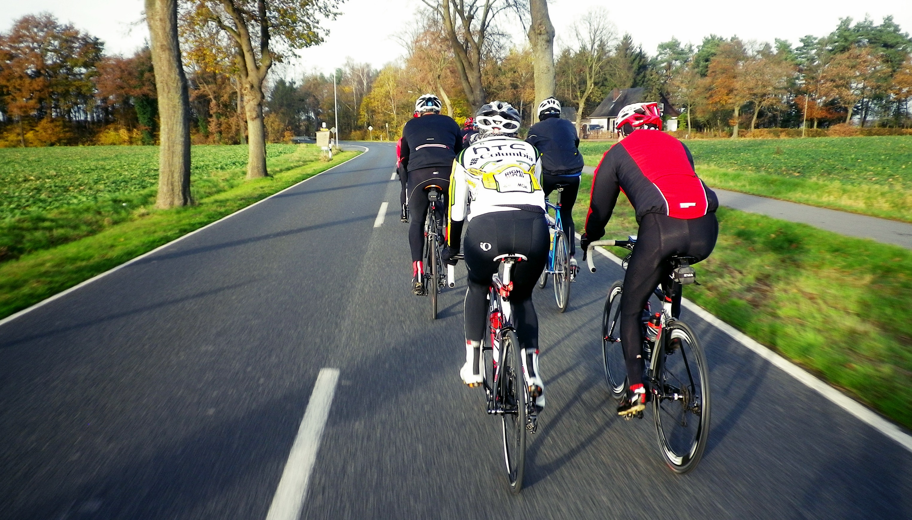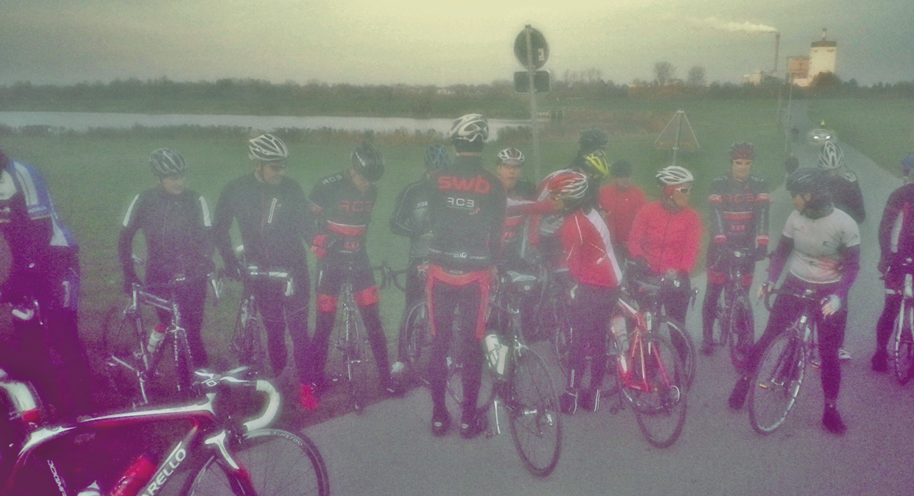 Auf dem Weg zum Treffpunkt sehe ich mindestens drei andere Rennradfahrer und denke mir: „Wow, das wird wirkliche ine große Gruppe werden!“. Am Treffpunkt bin ich dann auch nicht enttäuscht, neben Andreas, Jan, Caro, Tobias, Torben, Tanja und Lars kamen dann leicht verspätet auch noch Philipp und Jonas und ganz viele andere die ich teilweise von anderen Fahrten her kannte und teilweise eben noch nicht. Leicht verspätet ging es los und wir fuhren in gutem Tempo den Deich runter Richtung Weyhe. Aber nicht allzu lange. Jonas fuhr gleich neben mir, plötzlich wird er langsamer und ich sehe, wie unter seinem linken Fuß der linke Kurbelarm klebt aber leider ohne jegwelche Verbindung zum Rad. Ich weiß nicht was dann bei andren Menschen im Kopf vorgeht, aber ich denke dann immer zuerst: „Ist das eine neue Trainingsmethode?“ Es gibt so viele ungewöhnliche Dinge, man denke z.B. an die Power Cranks, quasi Kurbeln mit Freilauf die immer „mitgezogen“ werden müssen.