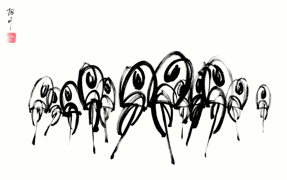 90 USD über 100 Copies. Gefällt mir als Idee nämlich Radfahrer zu zeichnen, die aussehen wie klassische, chinesische Schriftzeichen sehr gut und ist auch gut umgesetzt. Ich bin kein Experte, f[r das, was man im japanischen mit „Shodo“ (Kalligrapie) bezeichnet, man stelle sich aber in etwas so etwas vor, wenn es nicht darauf ankommt die Zeichen Strich für Strich genau nach Vorlage abzubilden und viel Individualität einfließen lassen kann – aber trotzdem die Zeichen noch erkennt: