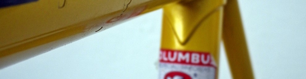 Viner Rahmen aus Italien von 1995. Schönes Gelb mit nach schönerem Metallic-blauen Schriftzügen quasi überall.