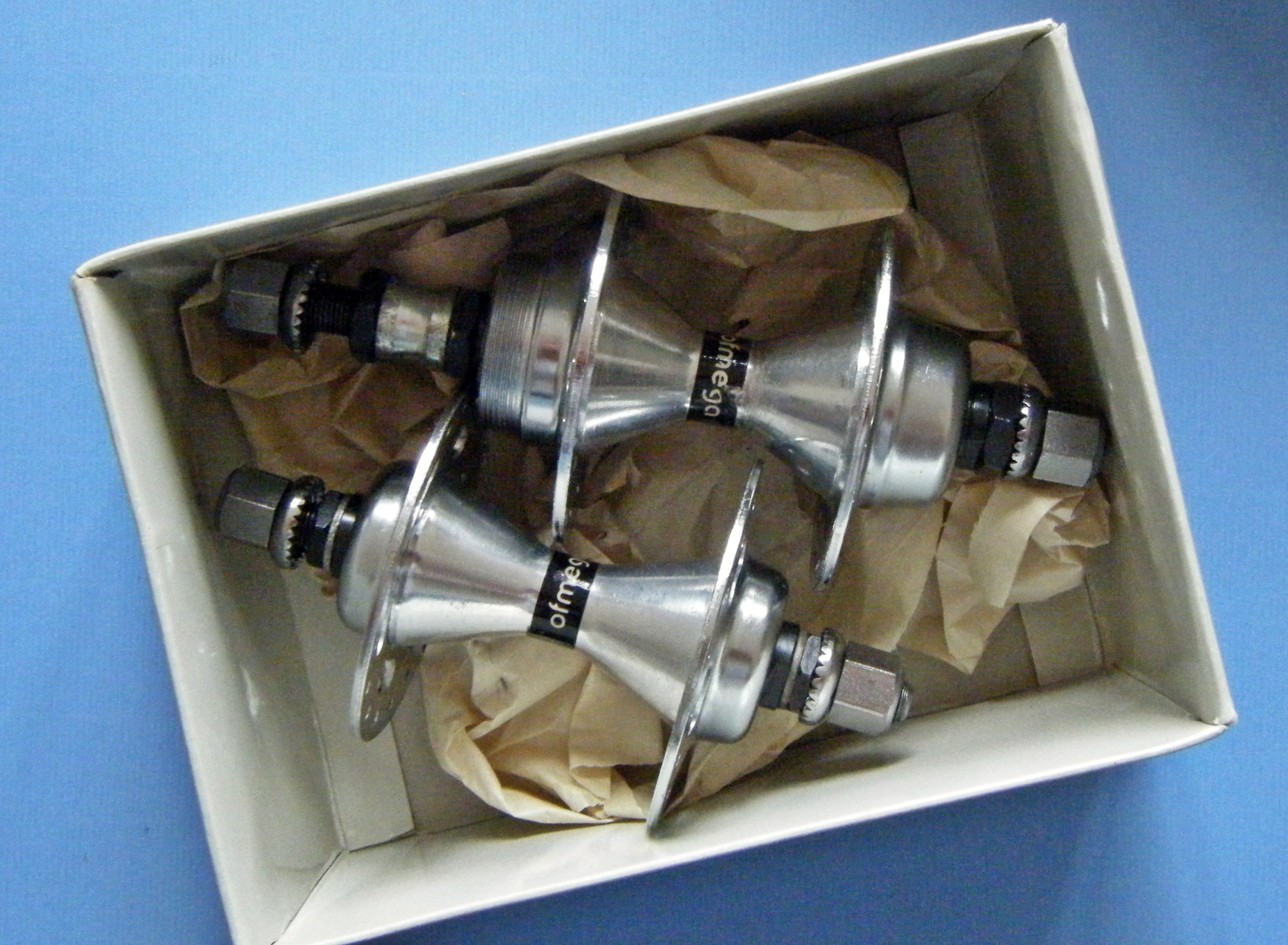 Das heutige Pièce de résistance. Originalverpackter, niemals benutzter Nabensatz von Ofmega für Mountainbikes? Der Typ heißt laut Packung auf jeden Fall „Mountain“. Na ja, was bedeutet das schon, wenn ein andere Typ „OMG“ heißt?