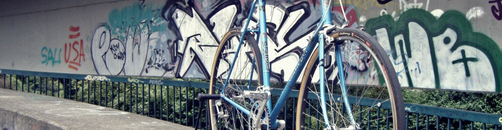 2013 kaufte ich mir ein wunderschönes Umberto Dei Rennrad und baute das mit einem Moustachelenker in Blau-Gold auf. Goldene TB14 Felgen etc. waren zu viel des Gutens und damit das Rad wieder fahrbar wurde, baute ich das ganze auf einfacherer Laufräder um. Trotzdem gab es wenig Gelegenheiten das Rad zu fahren, ihm fehlte einfach der korrekte Zweck.