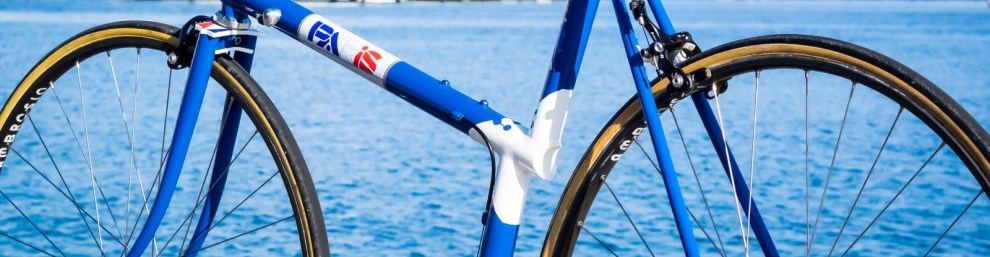 An diesem Aufbau gefallen wir insbesondnere zwei Dinge: Erstens, dieses konsequente blau-weiß-rot; dadurch verkörpert das Rad irgendwie alles was wir an Frankreich lieben (Paris, den Eifelturm, Gloria, La Grande Nation, Sommer in Südfrankreich, Wetter) und lässt uns vergessen, was wir nicht so gerne mögen (einige Franzosen).