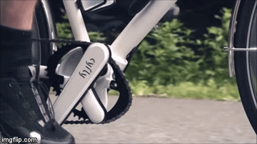 | As the pedals turn, those multi-linked crankarms chug back and forth, constantly changing –lengthening and shortening, and supposedly increasing torque during the „power stroke.“ |
