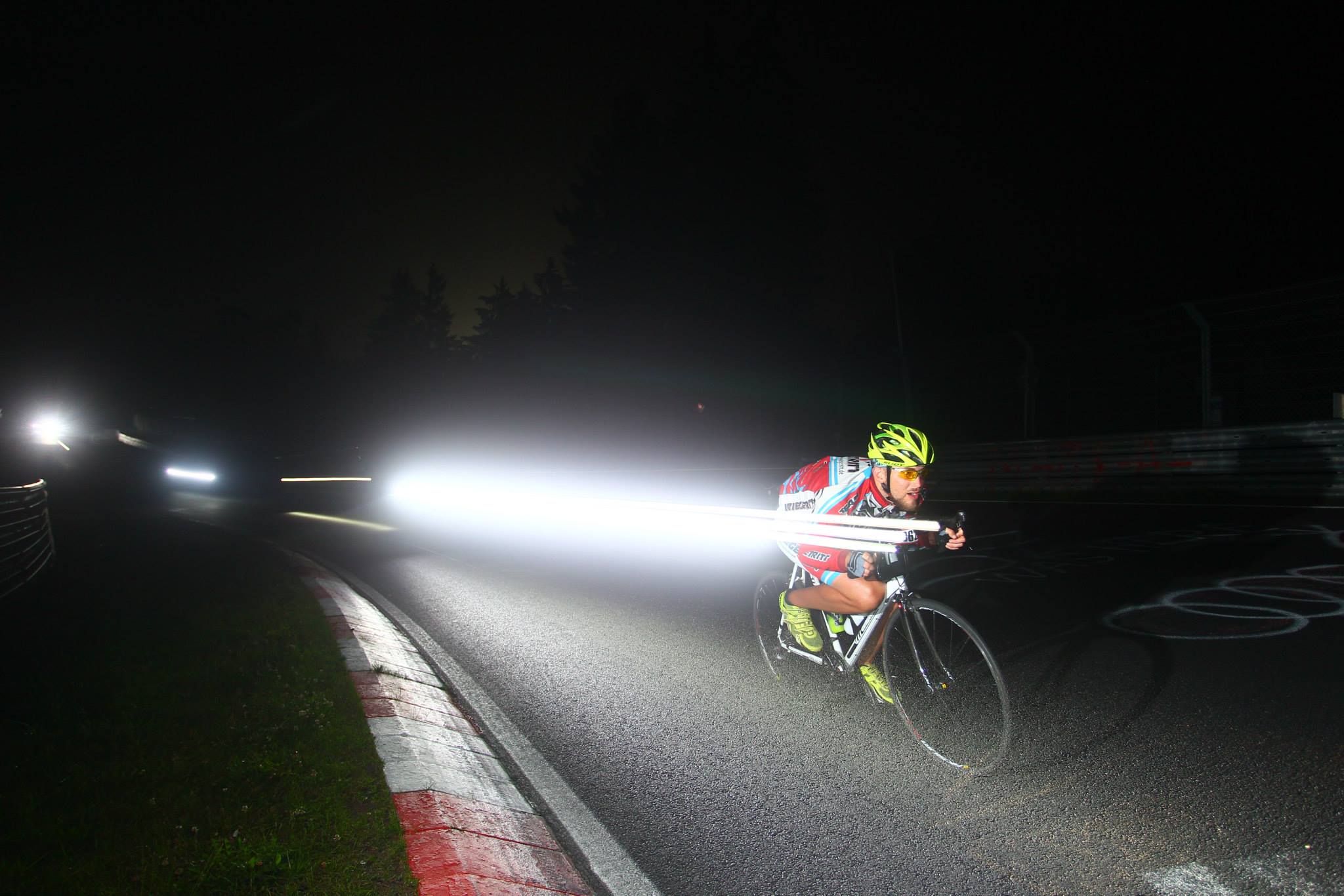 Recht flott stand unsere Strategie fest: Wir wollten alle die Einführungsrunde fahren, da wir ja noch gar keine Erfahrung mit dem Kurs hatten und dann etwa eine Runde pro Stunde schaffen, so dass wir insgesamt auf 24 Runden kommen. Je nach Leistungsvermögen wollten wir uns dann kontinuierlich abwechseln, so dass bis in den Morgen hinein jeder eine oder zwei Runden fährt (damit auch geschlafen werden kann). Am nächsten Morgen, wenn wir alle tot sind, wollten wir uns dann weiter abwechseln, aber eben nach jeder Runde. Björn trug den Transponder in der ersten Runde.