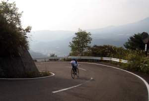 Whereas the race has been held on the main road so far, now the course turned to the right, where I shifted from outer into inner gear and started the long climb up. The first kilometer of climbing leads to the start point of the first day race and for the complete climbing distance [from the main street turn to the finish] a special “Climbing Price” is awarded by the organizer JCRC.