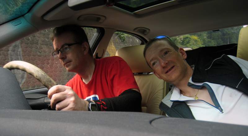 Naturally, after spending that much time on hill climbs during the last two days, Tom and me were still affected by the side effects of this life style,as one can clearly see in the last picture, showing us on the way home in the car.