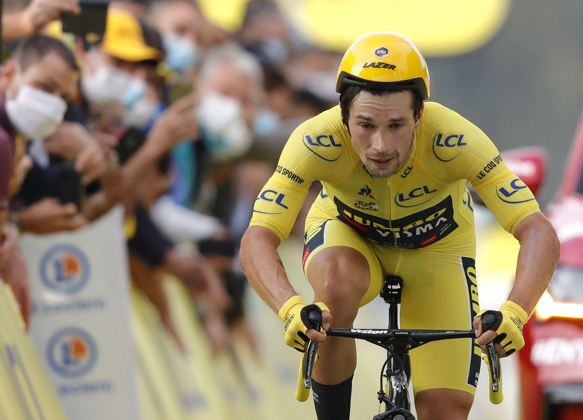 Wenn ich an 2020 denke, dann bleiben mir vor allem zwei Momente im Kopf hängen. Zunächst einmal das eigentlich unerklärlich schlechte Abschneiden von Primož Roglič bei der Tour de France im Zeitfahren der vorletzten Etappe. Ich würde einmal glauben, dass fast jeder der das hier liest weiß worum es geht: Roglič liegt am Start des vorletzten Tages in der Gesamtwertung vorne, muss nur noch ein gutes Einzelzeitfahren über 36 km gut fahren und wird dabei von Tadej Pogačar deklassiert, der damit dann auch die Tour gewinnt.