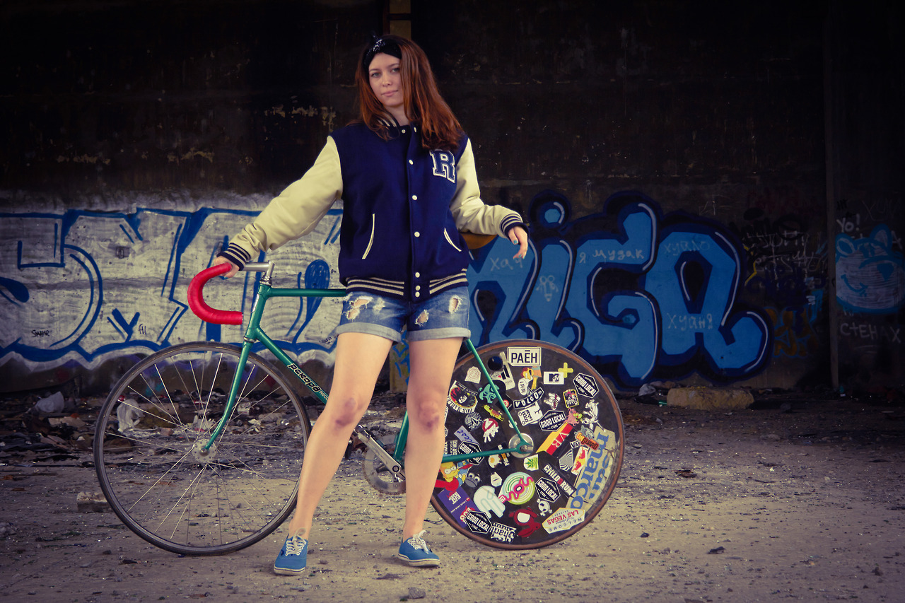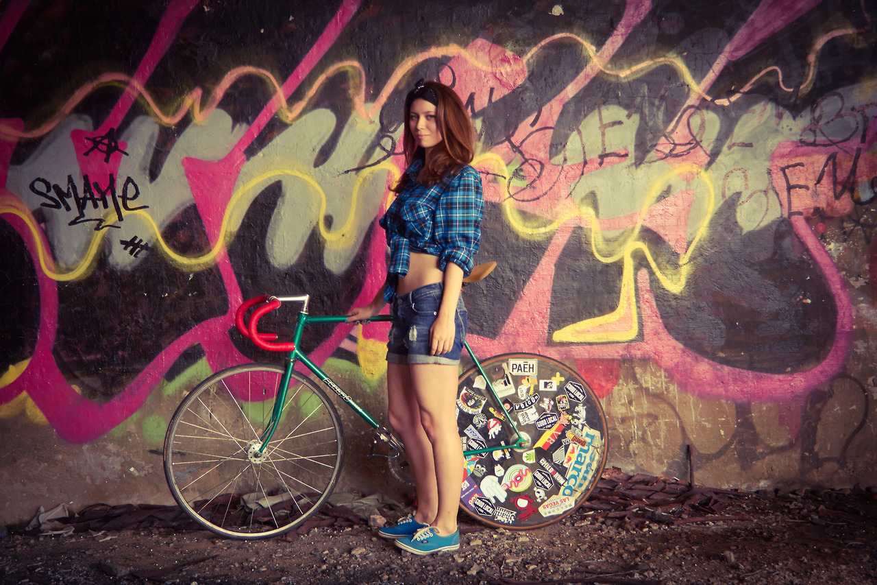 Mein Freund David aus Tokyo beklagte sich auf diesem Blog letztens, das sich viel zu viele Fotos von leicht bekleideten Asiatinnen auf Rädern posten würde. Es wird also Zeit für eine gut bekleidete Mitteleuropäerin und ihr Rad: Manu und ihr Mercian aka M&M.