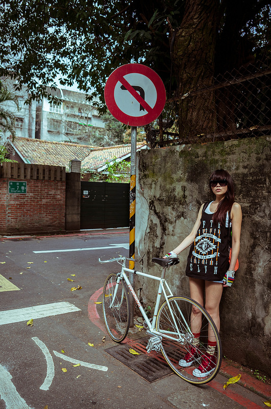Und natürlich auch ohne Hinterradbremse. Aber Rolf Vector Wheels gehalten von zwei stählernen Armen. Am Start bin ich eine Weile hinter dem Rollerfahrer hinterher gefahren und konnte mich davon überzeugen, dass dies keine unbedingt gute Art der Fortbewegung ist. Vor allem für die, die hinter dem fahren, denn per se wird das Ding ja nach dem Anschubsen erst einmal langsamer, bevor der Fahrer dann weit mit dem linken Bein ausholt und dann, wenn man fast aufgefahren ist, bekommt man den Schuh fast in das Vorderrad geknallt. Als die Straße so breit wurde, dass ich vorbei konnte habe ich das gemacht und das Teil nie mehr wieder gesehen.
