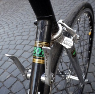 Durch den Aufbau hatte ich eine Menge Dinge gelernt. So wusste ich zum Beispiel vorher nicht, dass Schaltzüge und Bremzüge unterschiedliche Durchmesser (1,2 und 15,mm) und Hüllen (4 mm und 5 mm) haben. Und und und. Danach begann eine kurze Phase der sogenannten „Eprochengerechtheit“, also der zeitlichen Abstimmung von Rahmen und Komponenten. Das ist nun zum Glück wieder vorbei, wie eine lästige Erkältung. Golden Arrow Bremsen sind halt, wie auch alle anderen Bremsen aus dieser Zeit echt Mist. Mit den Shimano 105er wird das erträglich aber die erste moderne Bremse der Welt war iegntlich die Dura Ace 7403, weil Dual Pivot System. Auch Bremshebel ohne Rückholfeder sind nicht so doll habe ich gelernt.