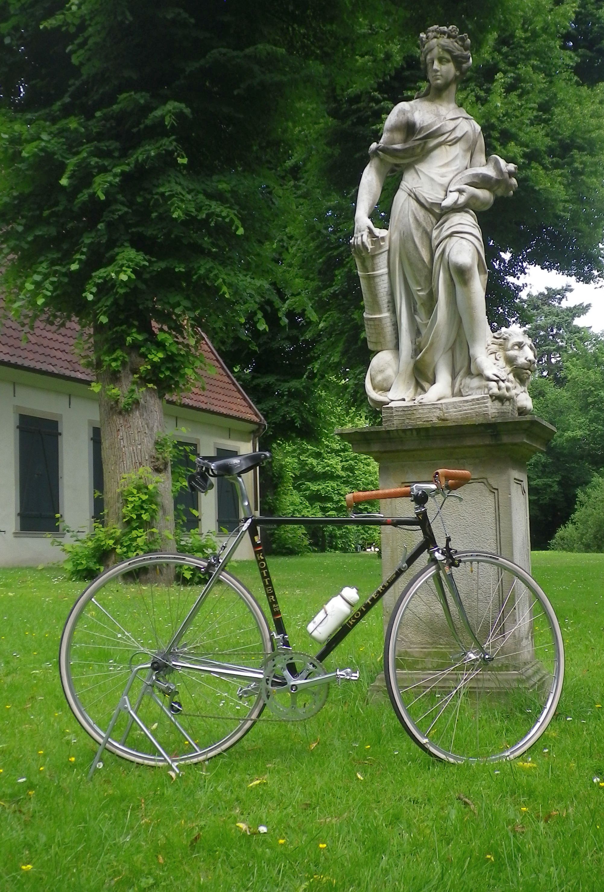 Gerade fertig geworden, obwohl etwas zu tun und noch weiter zu optimieren gibt es ja immer. Die Basis dieses Kotters ist ein komplett erhaltenes Rennrad aus den Achtzigern gewesen. Quasi wie neu, hat ein Hannoveraner für seine Frau gekauft und die hat es nicht gefahren sondern auf die Empore gestellt und anstrahlen lassen. Ich hatte das Rad vor ein paar Wochen auf Ebay ersteigert und es dann in Hannover abgeholt. Ich muss sagen, ich war wirklich schwer beeindruckt und es tat mir ein wenig weh den Originalzustandes des Rades zu verändern.
