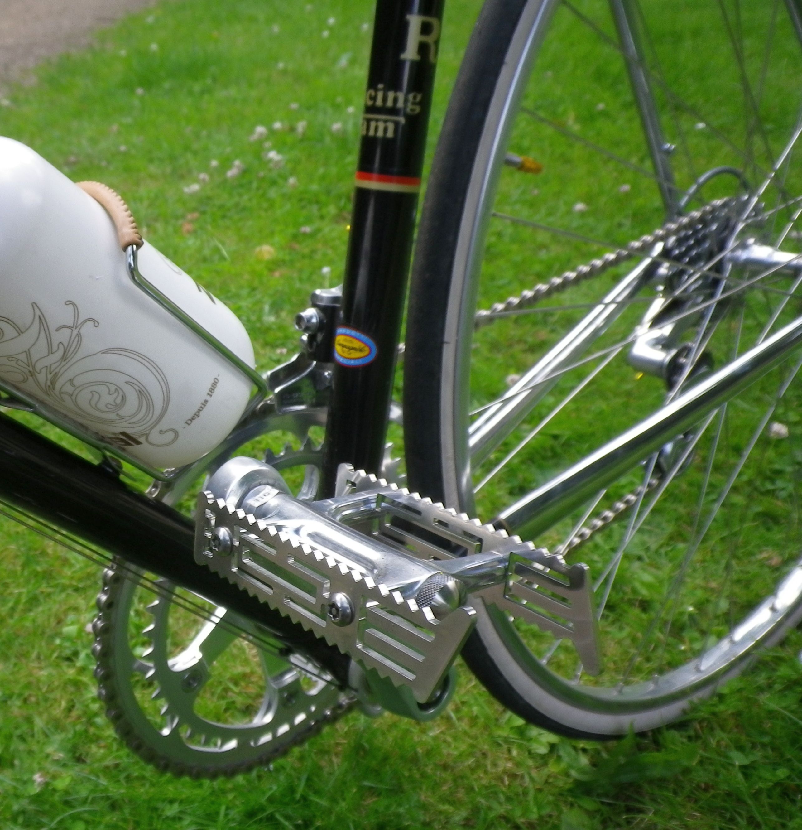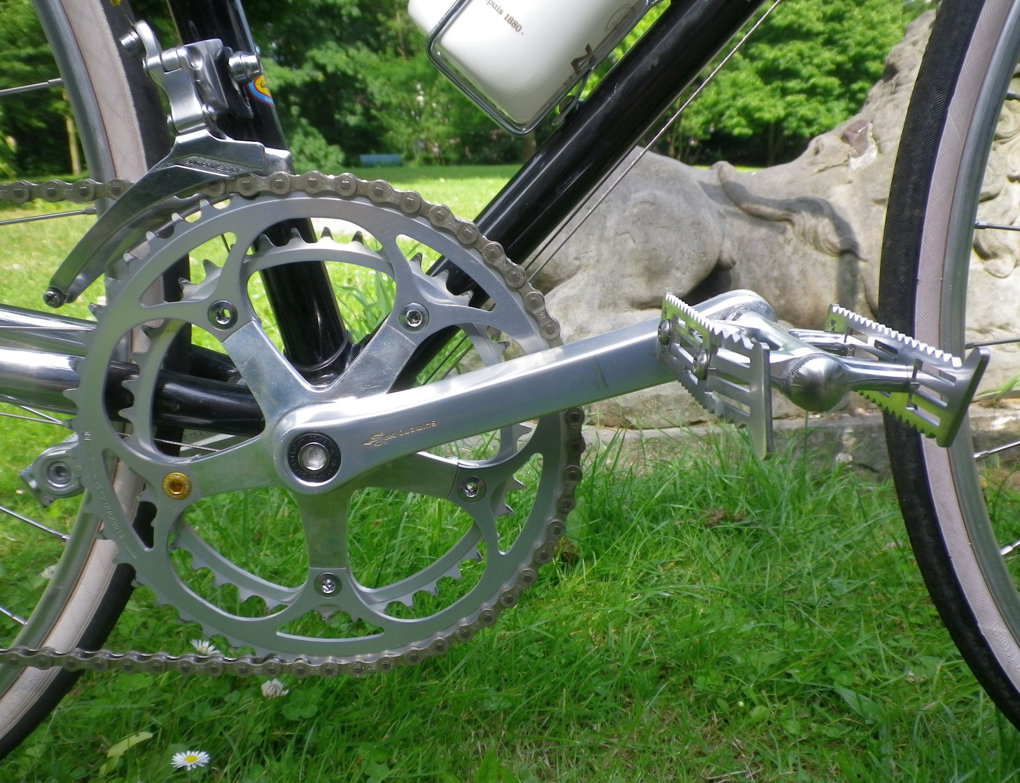 Ebenso wenig kamen klassische Haken- und Riemenpedale in Frage. Ich habe solche auch lange bei meinen Rädern benutzt, kam dann zu halben Haken ohne Riemen und dann einfachen Rennpedalen. Aber am besten für den Alltag sind immer noch Pedale die zweiseitig zu fahren sind – einfach drauf und losfahren.