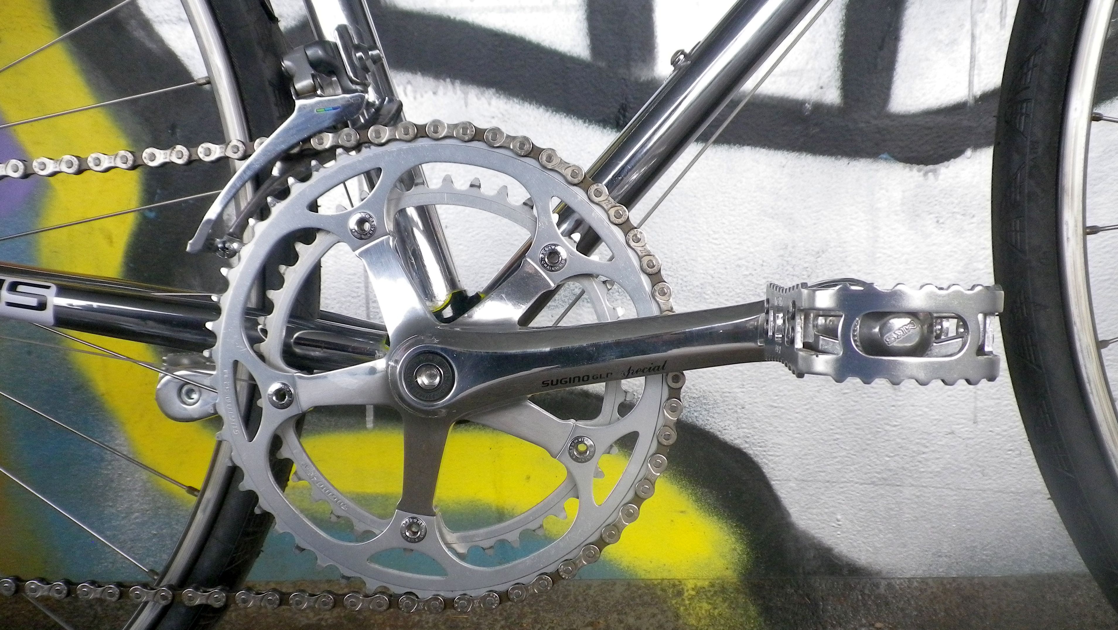 Sugino Kurbel mit MKS BMX Pedalen für die Stadt.