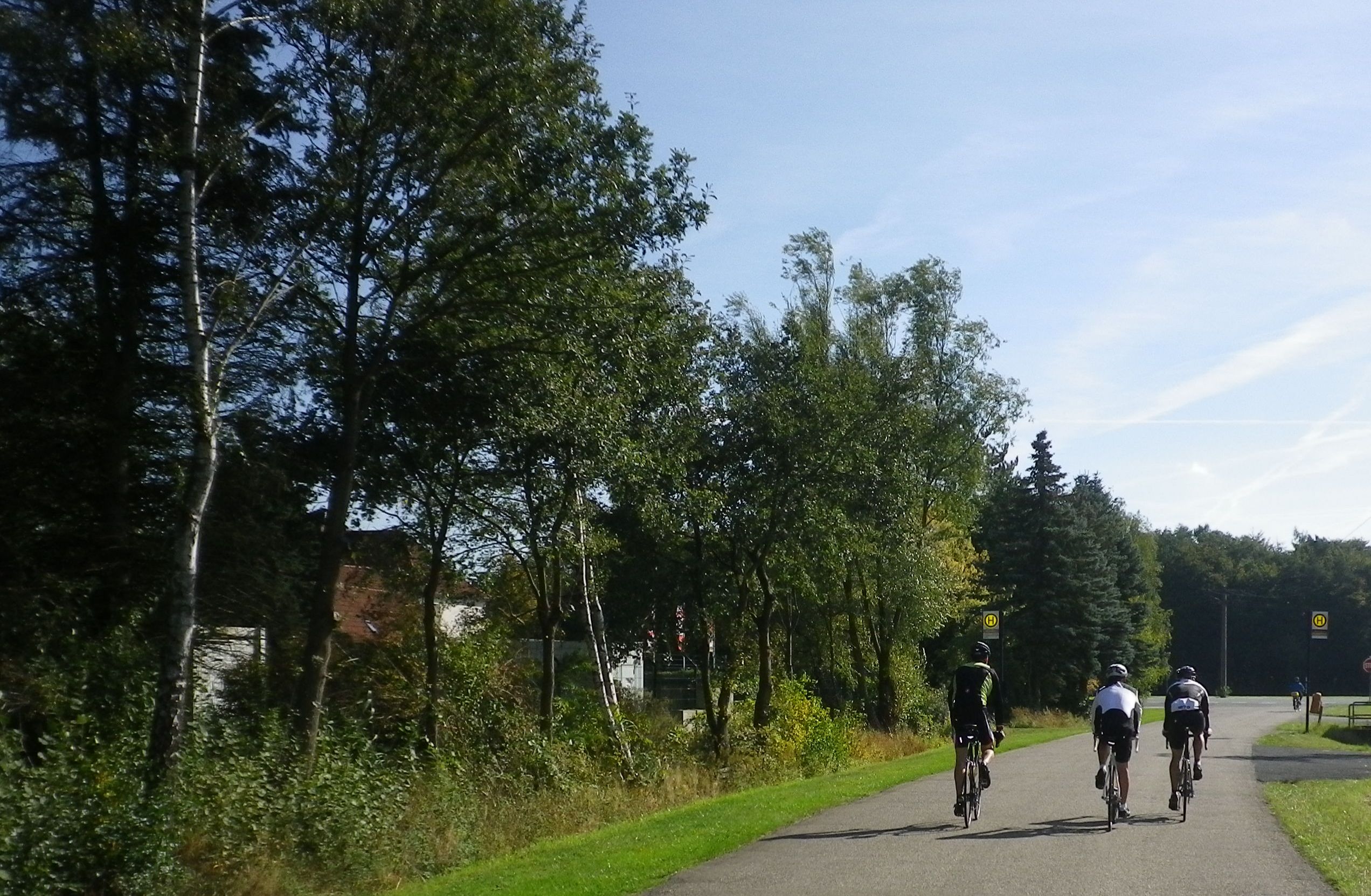 In Oldendorf we took the road to the North in order to traverse the ridge which is Soputh of Bad Essen. That is a very fine road and we had to ride out of teh saddle at high speed from time to time. Which we now enjoyed running on the energy of our two buns. Before we knew it we are on the top of the Bad Essen hills and enjoyed teh fast descent into the village. The we rode back to Osterkappeln.