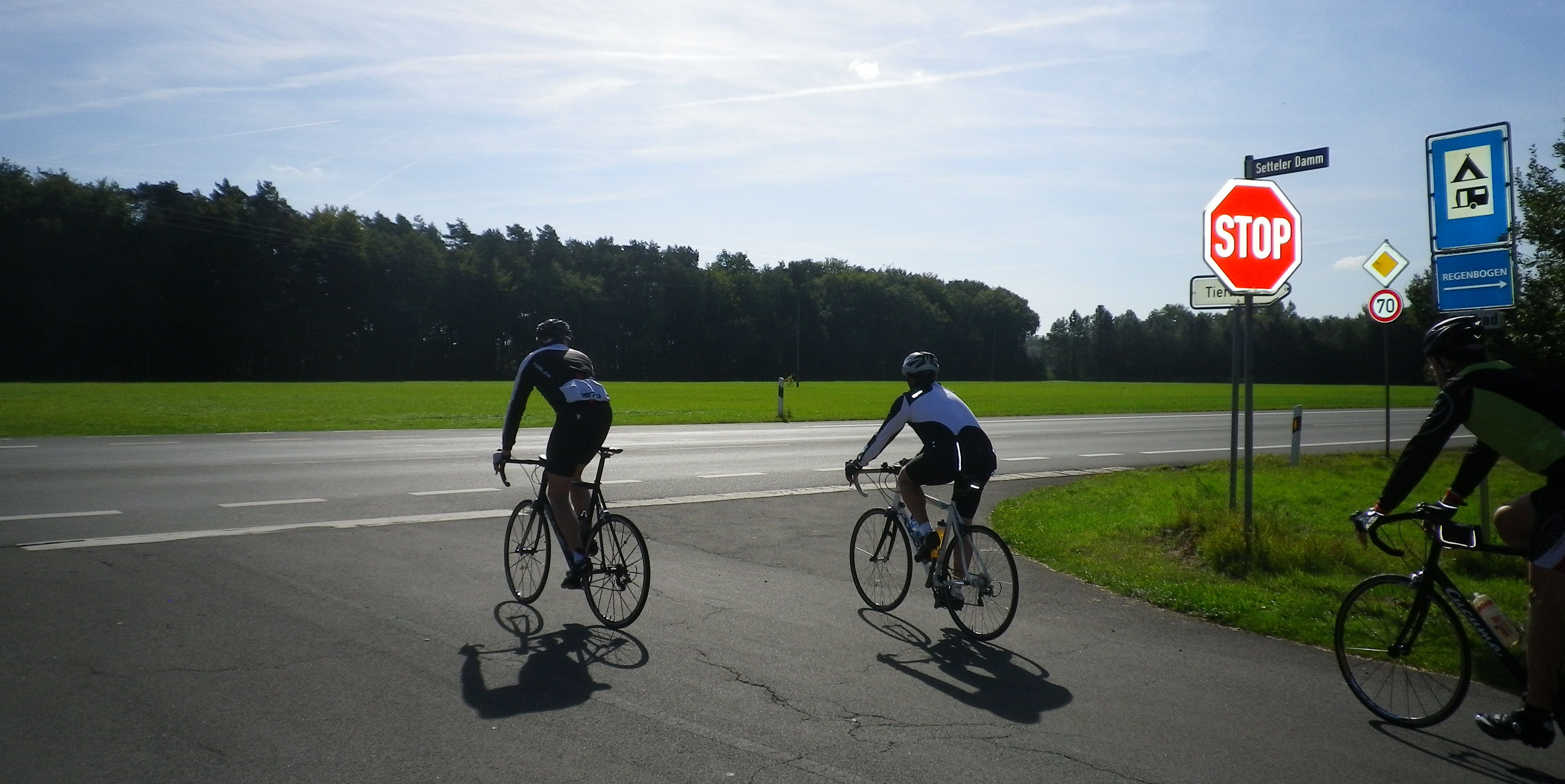 But let’s start at the start of the day. Ludwig and me gave our best to increase the intelectual properties of another generation and then we rode his car down to …. Ostercappeln. There was no particular reason to select this town but it provide a nice starting point for our riding plan. Which was, in short, to ride about 80 km under beautiful blue skies and in a hilly terrain. Jörg was so kind to provide us with some route suggestions in the form of GPS tracks, but once we were on teh road Ludwig wasn’t able to load them on his Garmin. This is exactly the point why I am still not in a mood to buy such device. It seems so …. inmature for the general user who doesn’t want to be bothered with technical details. Garmin reminds me of times when MS-DOS was the prevalent operating system running on computers and one has to write commands like „del ms*.*“ to proceed with works. And be very creative in devising file names as they were not allowed to be longer than 8 letters and/or numbers. Writing filenames used to be like twittering on amphetamine.