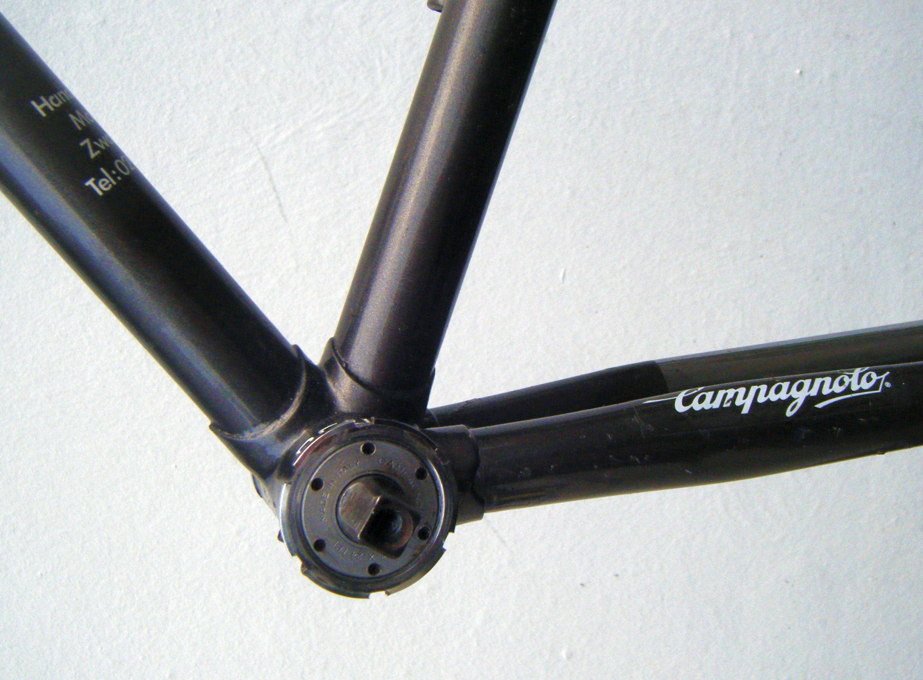 Tretlagerstandard ist natürlich ITA. Schicker Campagnolo Aufkleber auf der linken Kettenstrebe.