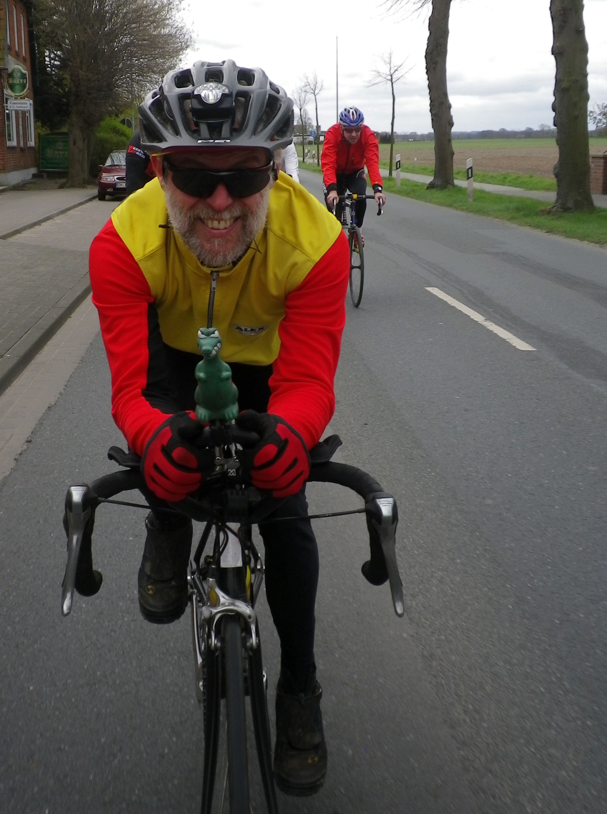 120 km war uns aber zu kurz. Und 155 km vielleicht zu lang. Deshalb fuhren wir die letztendlich die legendäre, inoffizielle 138 km Runde. Bitte fragt mich nicht wie und vor allem nicht warum. Ich hatte auch wirklich die Seiche am Rad kleben und noch einen dicken Hinterradplatten. Zum Glück hatte ich meinen 15er Schlüssel, den ich für Reifen- und Gangwechseln am Hinterrad brauche, dabei. Und das Gelände war flach, so dass men rad nicht wegrollte.