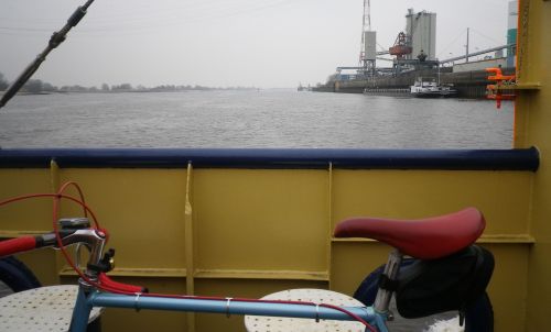 Dann weiter an Faun und Hansafrost (Achtung: Fabrik Eisverkauf hier) nach Schwanewede und Neuenkirchen. Vorebei an my blöoody valentine in Frage bis zum Kraftwerk und dort auf die Fähre über die Weser gewartet. Ich mag das wirklich sehr einmal auf einer Tour über die Weser zu setzen, bislang habe ich das aber immer in Vegesack gemacht.