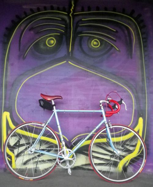 Dann ging es weiter entlang der Weser auf der Deichstraße der linken Seite (also falschen Seite) durch illustre Dörfer wie „Ritzenbüttel“, Lemwerder und, mein Favorit „Motzen“ (Dortmotto: „1000 Jahre Motzen“). Von der Weser sieht man da übrigens nichts, da die Straße hinter dem Deich verläuft und relativ trostlos ist. Irgendwann kommt man dann, nach einer dicken Prise Gegenwind, wieder nach Bremen rein, da wie die dicken BLG Lager für Daimler sind. Und dann weiter durch beautiful Wolmershausen bis zur Becksbrücke (Stephanbrücke). Warum da eigentlich keine Fixiefahrer rumhängen ist mir unbegreiflich. Nahe der Innenstadt! Überdacht! Jede Menge bunte Graffities! Was wil man mehr?