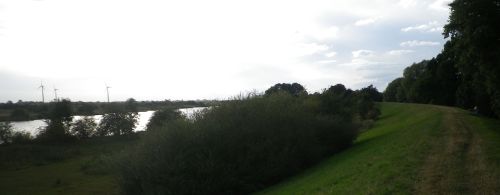 Weiter ging es auf den Deich und entlang der Wümme Richtung Kuhsiel und Dammsiel. Der Wind bließ schön von hinten und so dachte ich, aaß ich vielleicht die ganze Zeit nur nach Norden fahren sollte, vielleicht sogar bis zum legendären Fickmühlen? Aber dann mitd em Zug zurück macht keinen Spaß, kostet Geld und dauert, also erst einmal weiter Richtung Ritterhude und dann diesen Megaberg auf der L151 hoch zur B74. Eine der schlimmsten und brutalsten Steigungen in Bremen überhaupt, so sich die Spreu vom Weizen und Appelkorn trennt. Man war ich fertig, als ich nach ca 27 Sekunden endlich oben war.